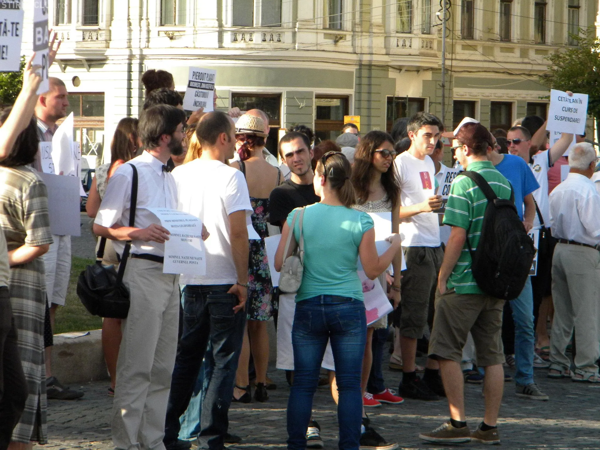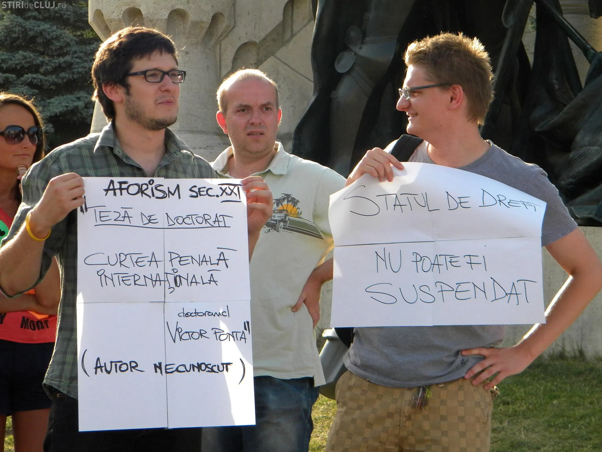 Clujenii adunați în Piață erau nemulţumiţi de modul în care încearcă puterea USL să ”subjuge” instituţiile statului, iar acest lucru s-a văzut şi din lozincile pe care le-au afişat: ”CCR BATE PCR”, ”După noi Potopul - Victor Ponta”, ”USL acum plagiază şi loviturile de stat”, "Statul de drept, nu poate fi suspendat", "Vrem o comisie pentru desfiinţarea tuturor comisiilor".