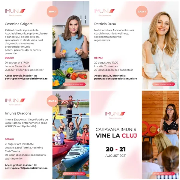 Caravana Imunis by Asociația Imunis, prima asociatie din Romania dedicata stilului de viata post diagnostic al pacientilor cu cancer, vine la Cluj-Napoca pe 20 si 21 august.