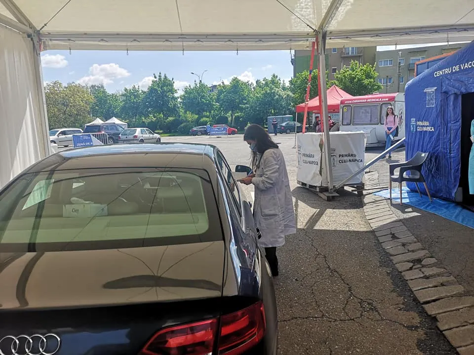 Vaccinarea de la centrul drive though din Cluj-Napoca este fără îndoială un succes de proporții. 5% din populația județului s-a imunizat din mașină, pe platoul Sălii Sporturilor.