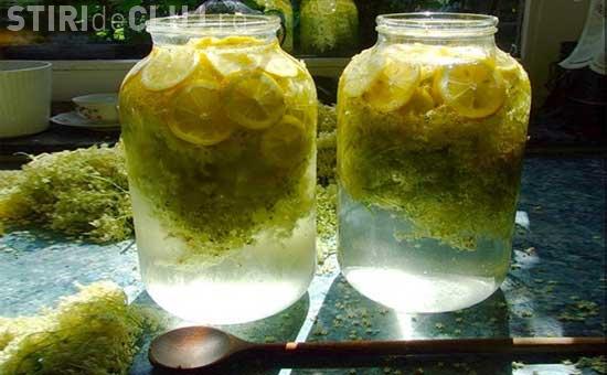 SOCATĂ reţetă. Cele 14 flori de soc se pun într-un borcan de 10 litri sau două vase 5 litri fiecare curate, fără urme de grăsime pe ele şi în care să încapă, în mod egal, câte 5 l de apă şi să mai rămână puţin loc pentru zahăr şi lămâi, se adaugă apă şi lămâile tăiate felii şi stoarse bine de sucul lor în apă. Ar fi bine ca la două dintre lămâi să îndepărtaţi coaja galbenă, căci dă prea multă amăreala. Borcanul se acoperă şi se lasă o zi.