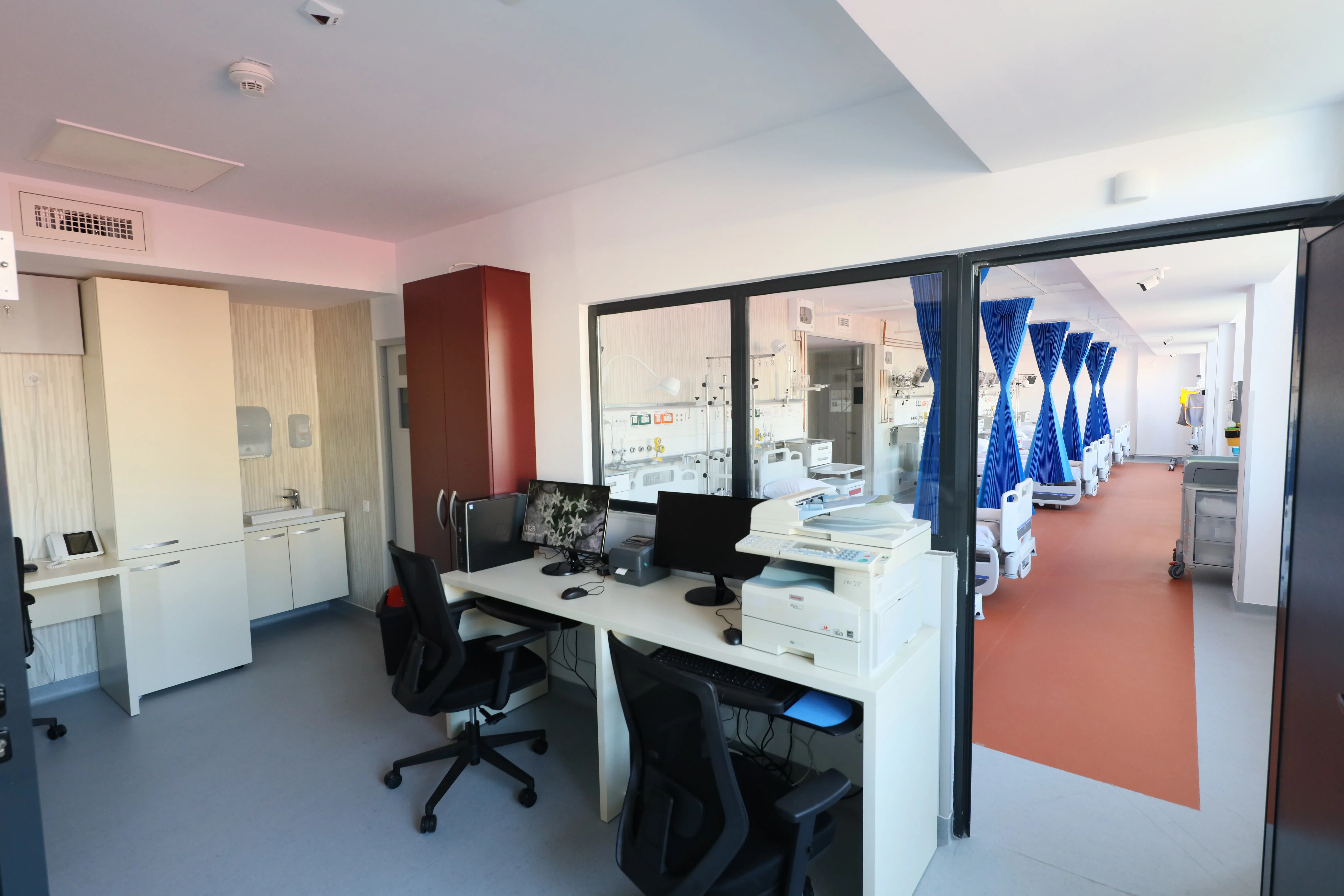 U.S.T.A.C.C. are în componență 24 de paturi dispuse în 9 saloane, cu băi proprii, cu o capacitate cuprinsă între 1 - 6 paturi, deservite de 2 posturi de supraveghere permanentă și alte funcțiuni care asigură monitorizarea continuă și directă a tuturor pacienţilor.