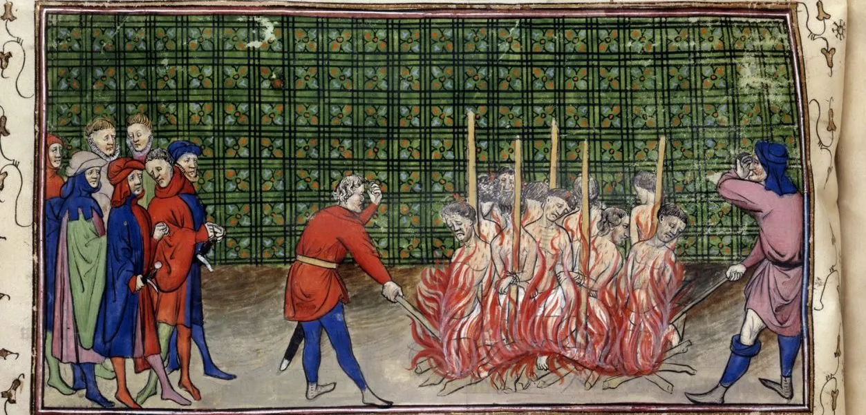 Mai mult, istoria consemnează și episoade mult mai întunecate. În perioade de panică extremă, mai ales la începutul secolului XIV, au existat cazuri documentate în care leproșii au fost arși de vii. Cel mai cunoscut exemplu este Franța anului 1321, când au circulat zvonuri că leproșii ar otrăvi fântânile și ar conspira împotriva populației. Sub presiunea isteriei colective, au avut loc arestări, torturi și execuții publice, inclusiv prin ardere pe rug. Istoricii subliniază însă că aceste execuții nu reprezentau regula, ci excepții violente generate de frică și dezinformare.