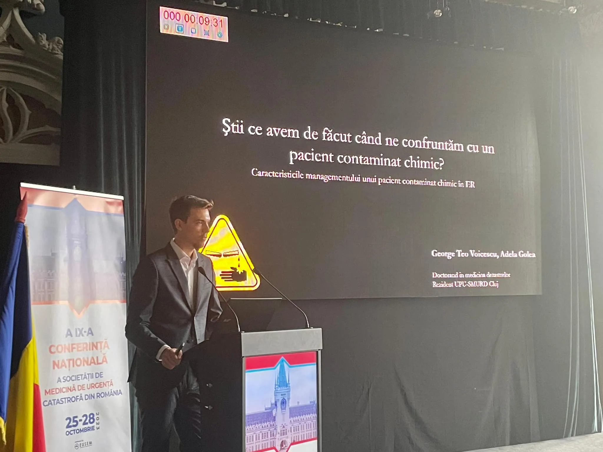 ”Reprezentați la eveniment de medicul rezident George Voicescu, colegii noștri au prezentat un caz ce părea normal, dar care s-a dovedit a fi complex, întrucât pacientul fusese contaminat chimic cu acizi industriali.
