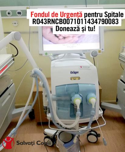 Salvați Copiii a început echiparea spitalelor cu aparatură medicală urgentă în lupta contra pandemiei de Covid-19. În urma solicitărilor urgente primite de la spitale, organizația a achiziționat prioritar, din fondul de urgență deschis pentru spitale, echipamente și materiale medicale indispensabile în lupta medicilor.