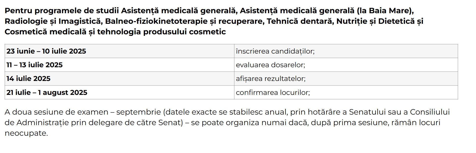 Candidații sunt invitați să consulte site-ul oficial al UMF Cluj pentru detalii suplimentare și pentru a urmări orice modificări ale calendarului.