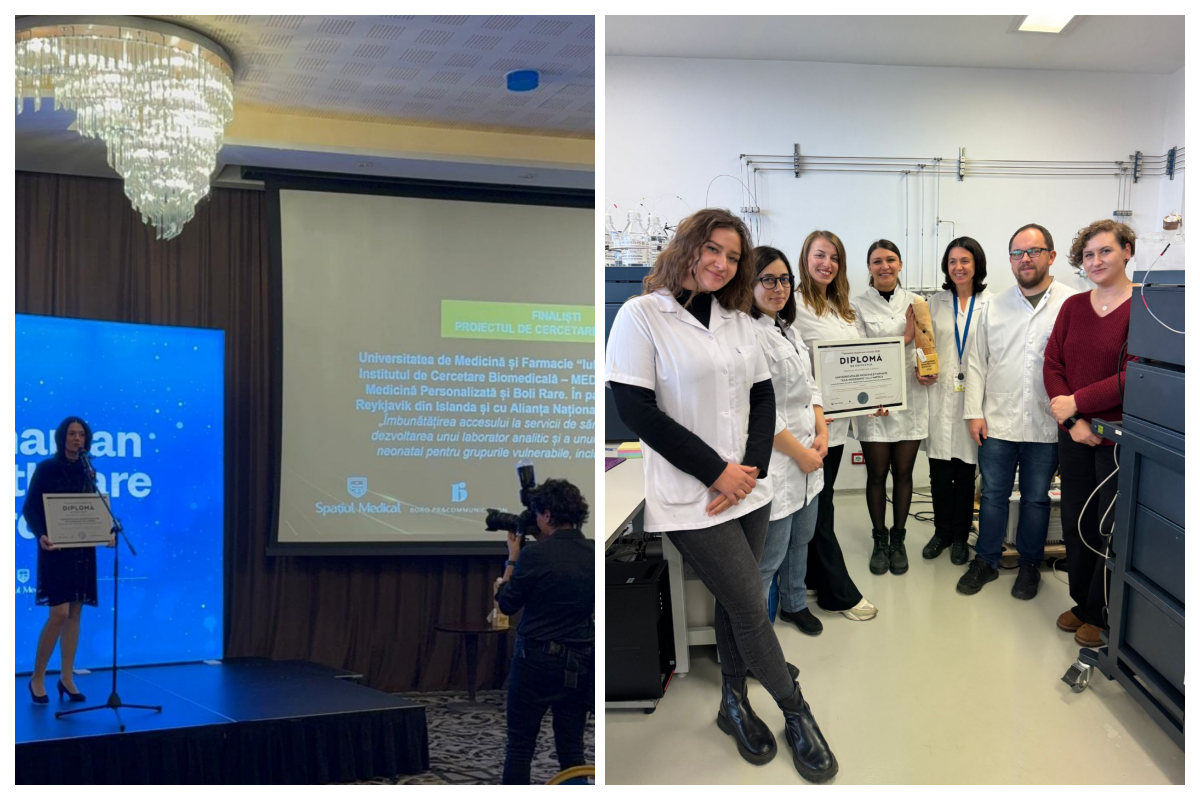 Universitatea de Medicină și Farmacie „Iuliu Hațieganu” Cluj-Napoca a fost distinsă cu Diploma de Excelență la Romanian Healthcare Awards 2025, la categoria „Proiectul de cercetare al anului!”. Premiul a fost acordat prin Institutul de Cercetare Biomedicală – MEDFUTURE și Departamentul de Medicină Personalizată și Boli Rare.