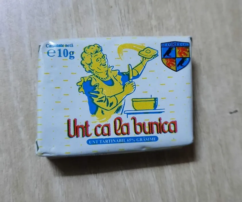 Este un unt ”Ca la bunica” cu ulei de palmier, doar 45% e produs lactat. Poate dacă apare în presa se face ceva”, ne-a semnalat Vlad.