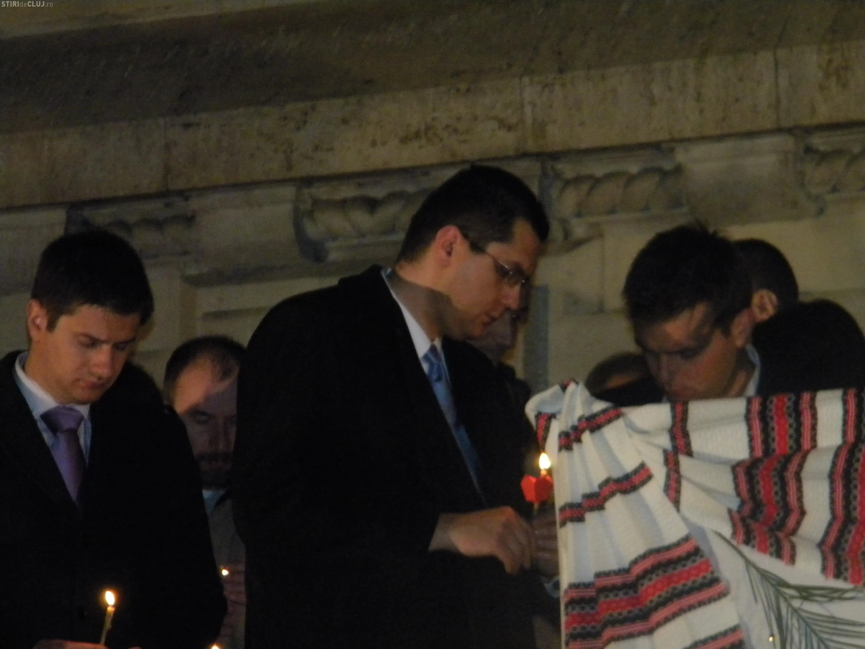 "Lumina Sfanta" a fost intampinata la Aeroport de reprezentantii Mitropoliei Clujului, care au oficiat si o scurta slujba, dupa care lumina a fost dusa credinciosilor care o asteptau in Piata Avram Iancu.