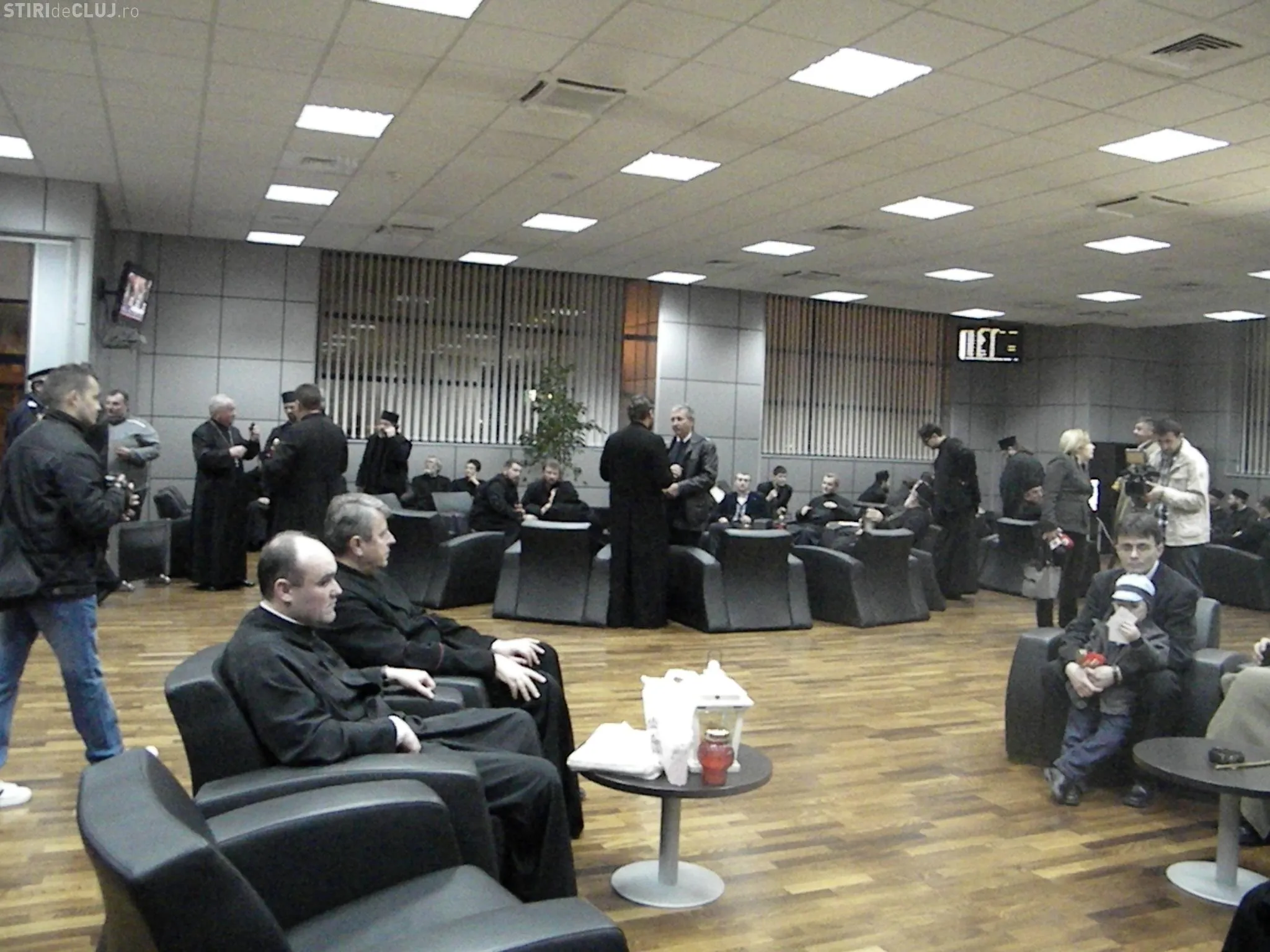 "Lumina Sfanta" trebuia sa ajunga pe Aeroportul International Cluj-Napoca, sambata seara, la ora 20:30, potrivit reprezentantilor Mitropoliei, insa din cauza conditiilor meteo, a intarziat mai bine de 2 ore si jumatate.