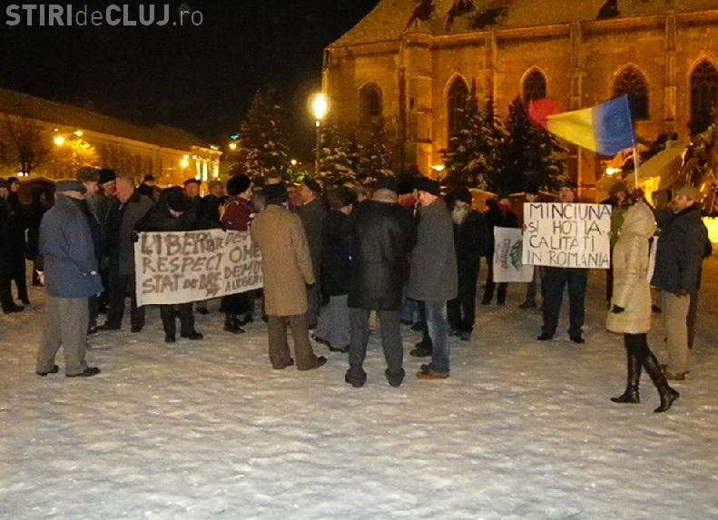 In jur de 100 de oameni s-au strans in centrul orasului, iar mesajul scris pe o pancarta: "Vlad Tepes presedinte" a fost scandarea zilei.