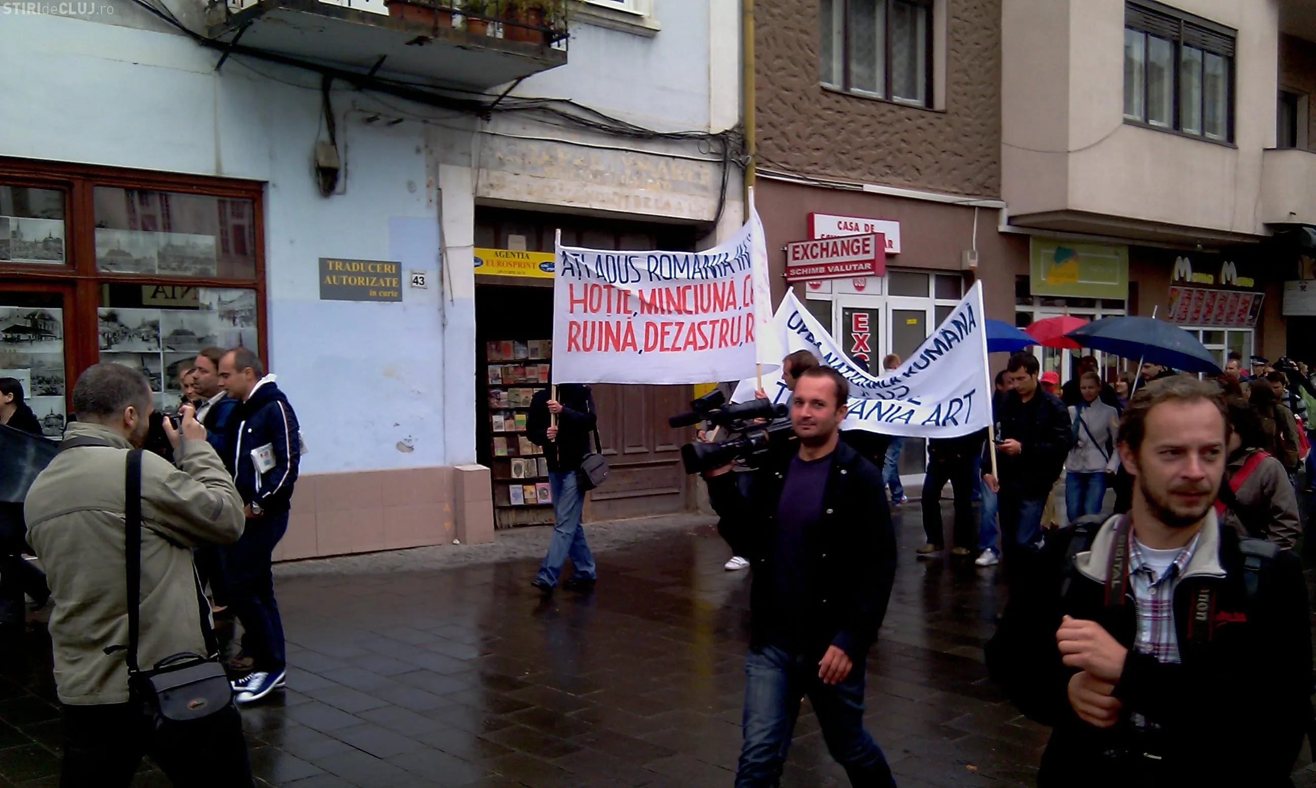 Jurnalistii au iesit in strada la Cluj pentru a protesta fata de modul umilitor in care se face colectarea drepturilor de autor. Ziaristii au fost sprijiniti de actorii de la Teatrul National si artistii de la Opera Cluj.