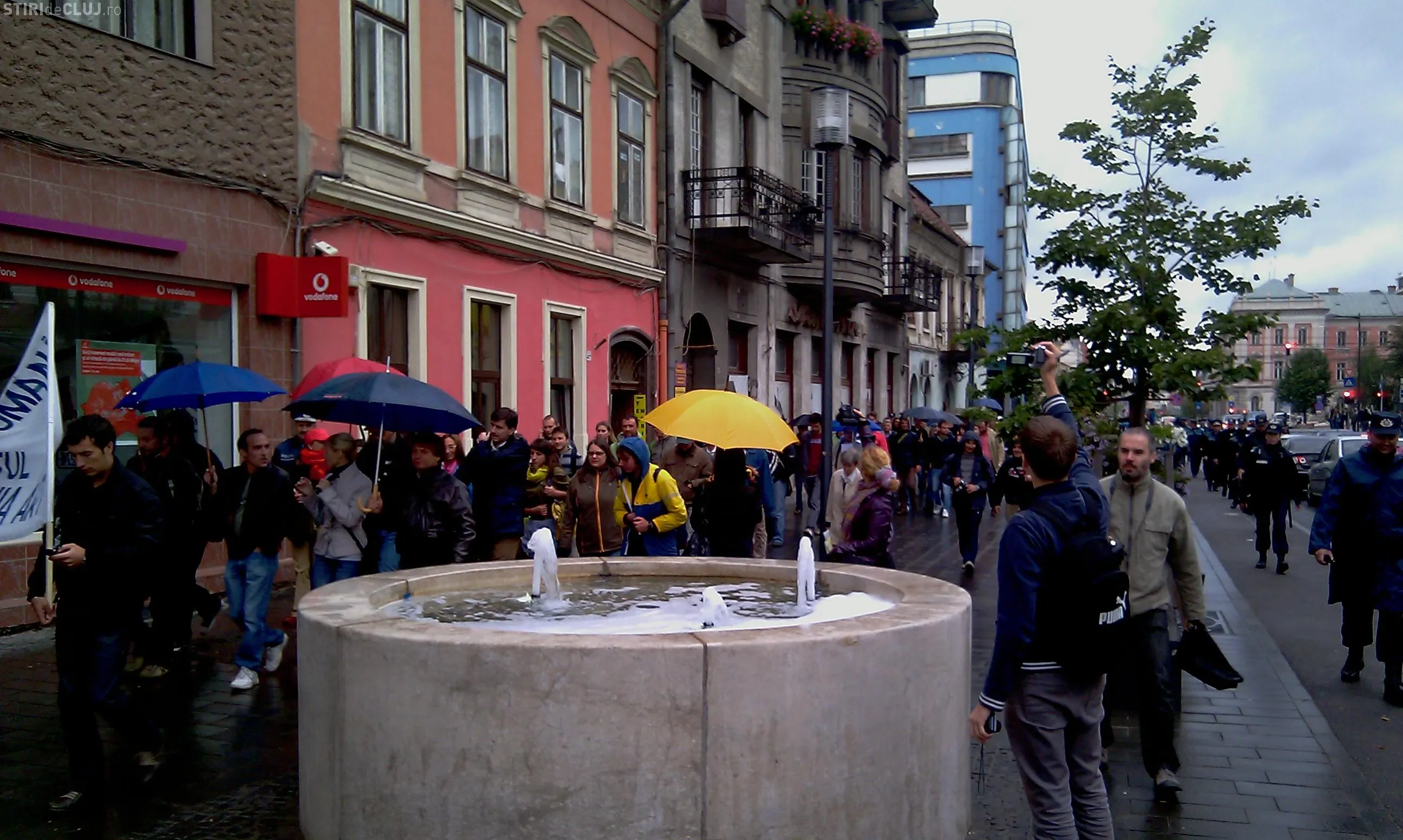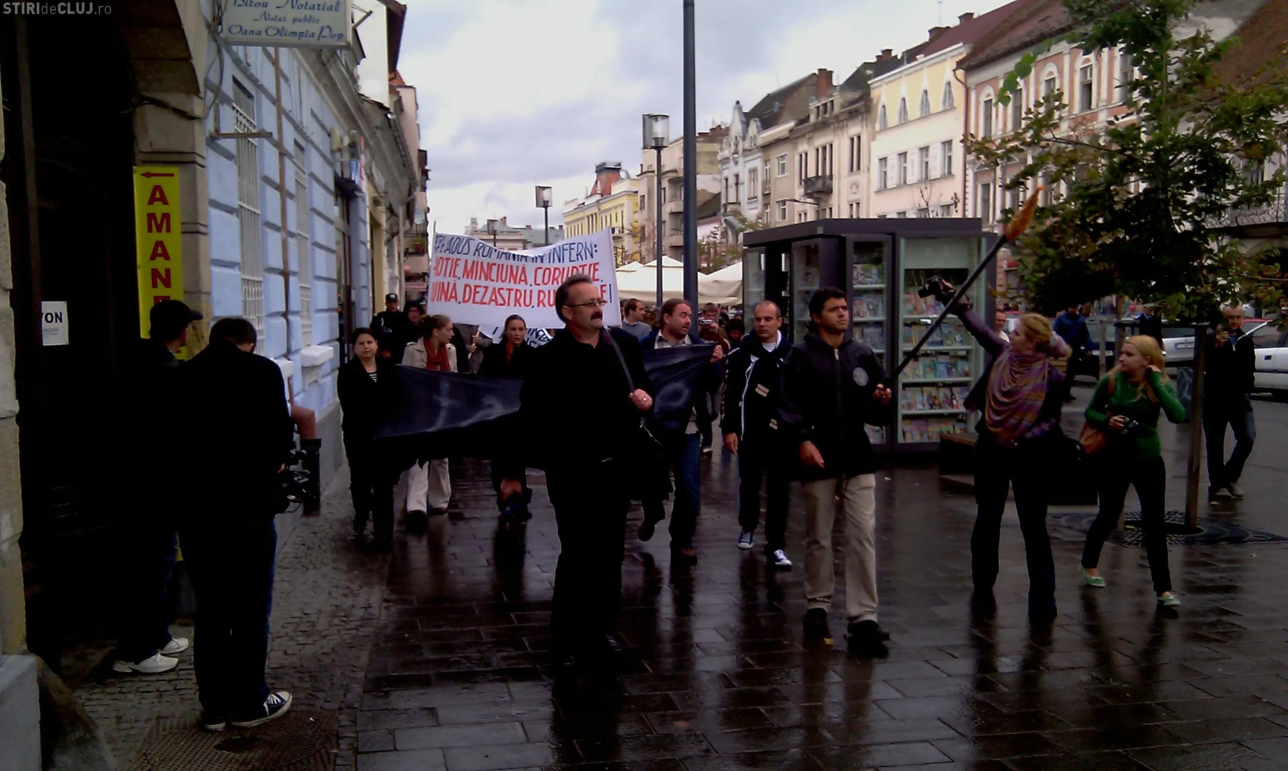 Jurnalistii au pornit de la Teatrul National Cluj pe traseul Bulevardul Eroilor, Piata Unirii, inapoi pe Bulevardul Eroilor cu oprire la Prefectura, unde a fost lasat un memoriu adresat Guvernului.