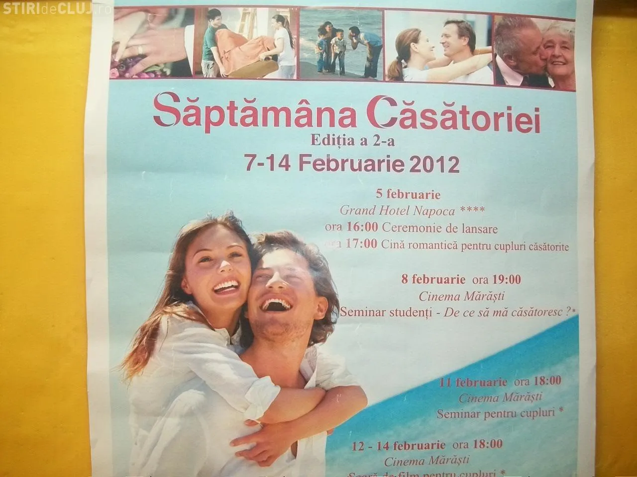 Cea de-a doua editie a evenimentului "Saptamana Casatoriei" se desfasoara la Cluj-Napooca in perioada 7-14 februarie 2012. Evenimentul isi propune, si de aceasta data, sa atraga cat mai multe cupluri care sa fie informate despre viata de familie.