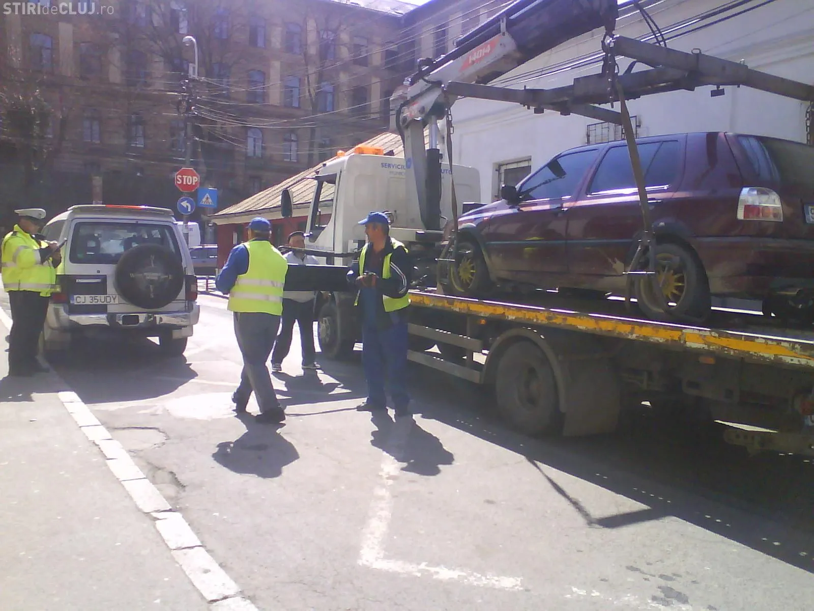 2 masini de pe strada Iuliu Hatieganu, ce incurcau circulatia, ridicate de RADP Cluj si Politia Locala STIREA CITITORULUI FOTO
