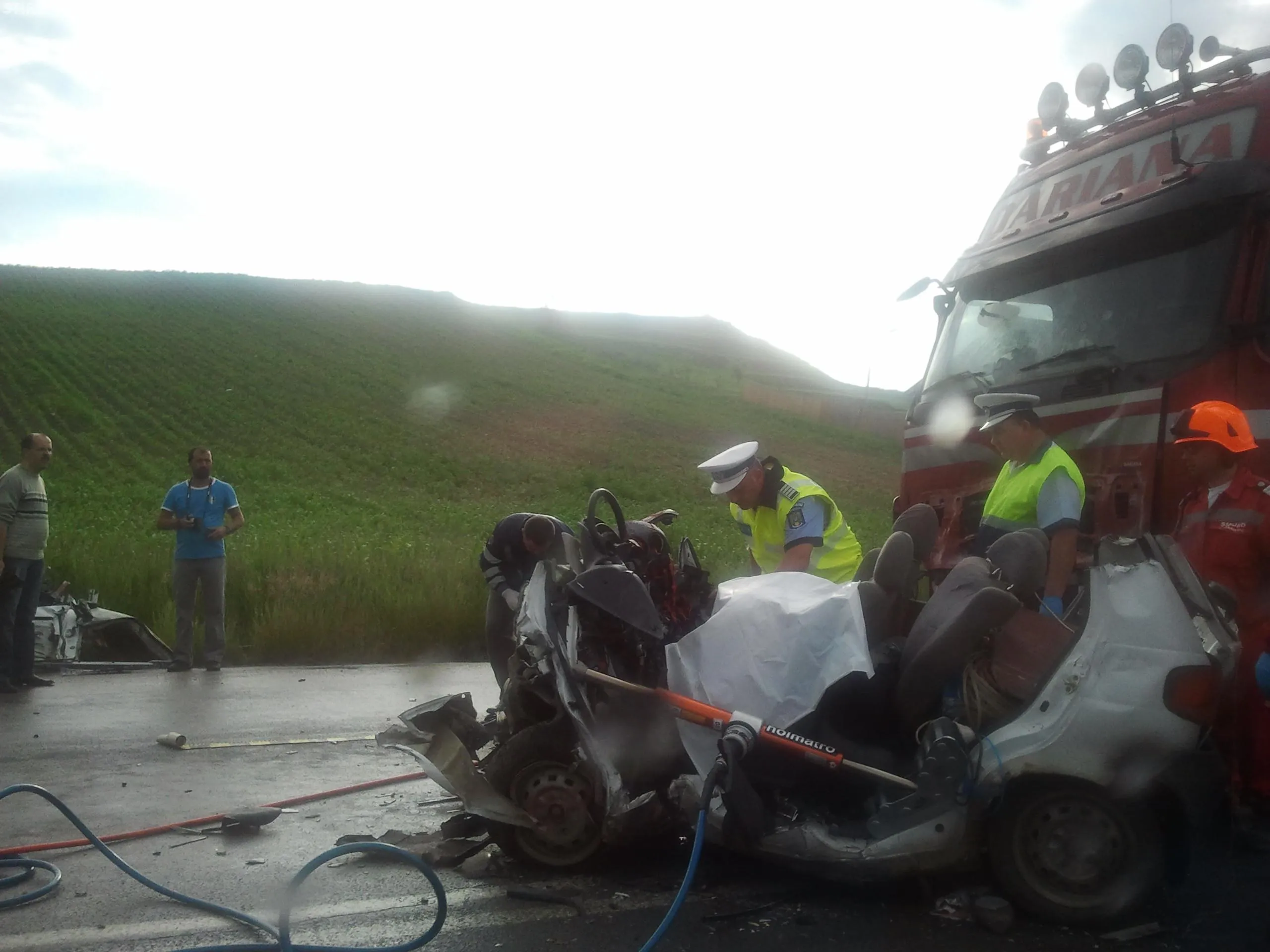 "Am fost solicitati in jurul orei 06:04. Ne-am deplasat la fata locului si acolo o masina mica care era sub un TIR. In masina mica erau 2 barbati si amandoi au murit. Cand am ajuns acolo una dintre persoane era decedata deja, dupa care a murit si cea dea doua. S-a intervenit cu echipaje de descarcerare.