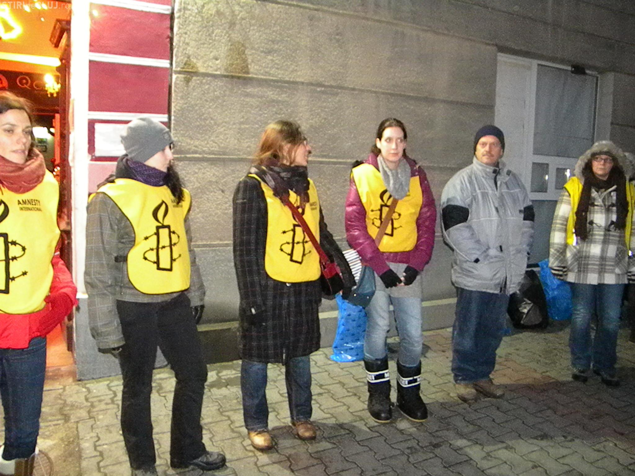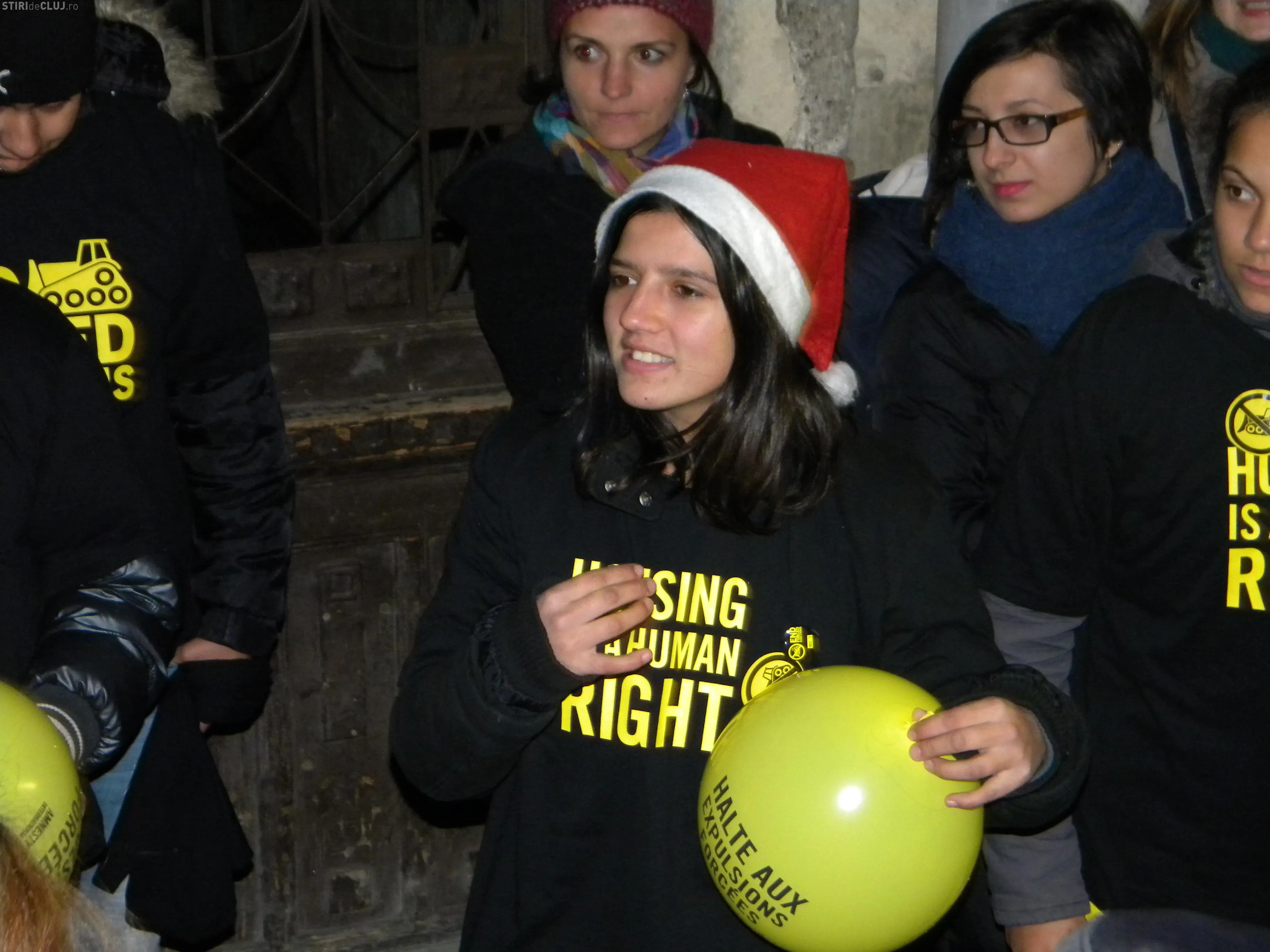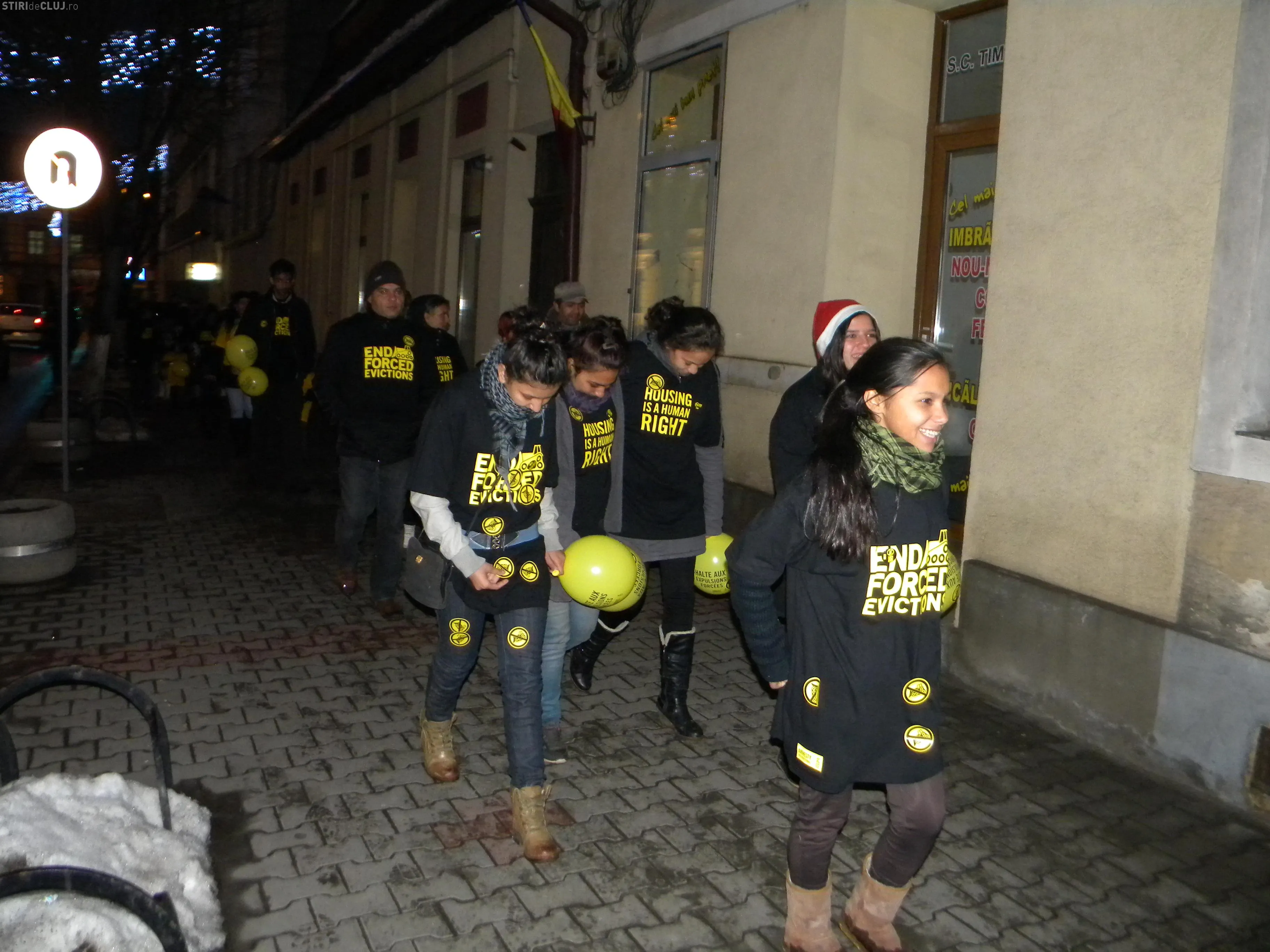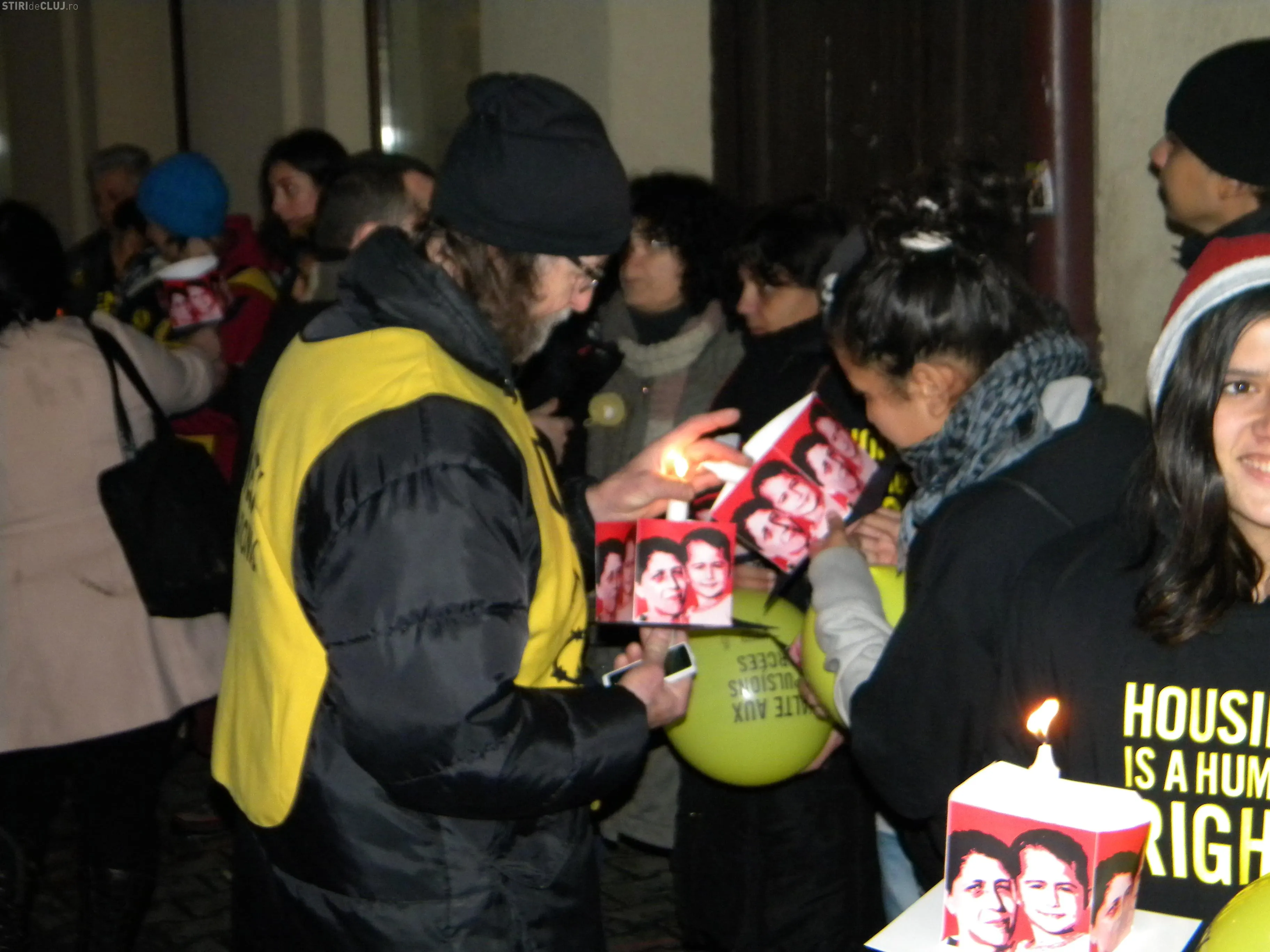 Protestatarii, circa 100 de țigani care locuiesc la Pata Rât în case de tip container, și alții 100 de activiști din Cluj-Napoca, dar și din străinătate de la Amnesty International, au format un lanț uman în jurul Primăriei, au aprins lumânări pe care, la final, le-au lăsat în fața clădirii municipalității.
