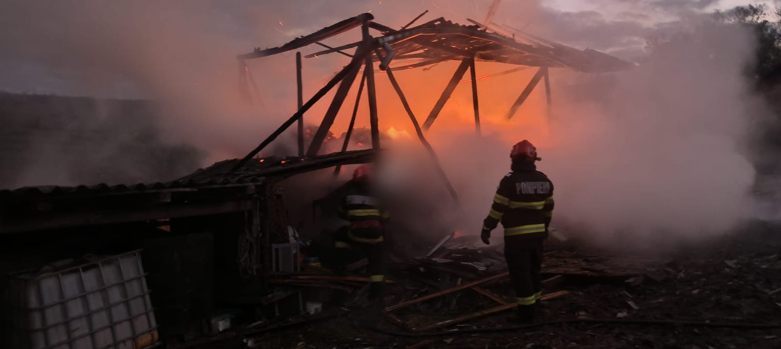 Incendiul se manifesta generalizat pe o suprafață de aproximativ 100 de metri pătrați, în interior fiind depozitați aproximativ 60 de baloți de fân și două tone de grâu. Materialele combustibile au alimentat flăcările, îngreunând misiunea echipajelor de intervenție.