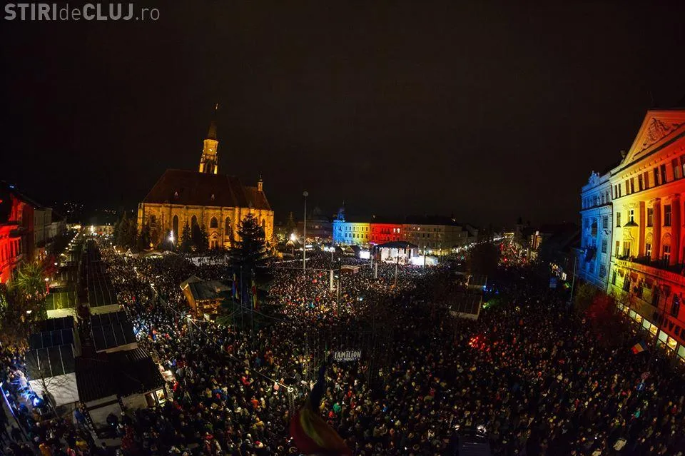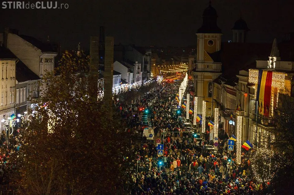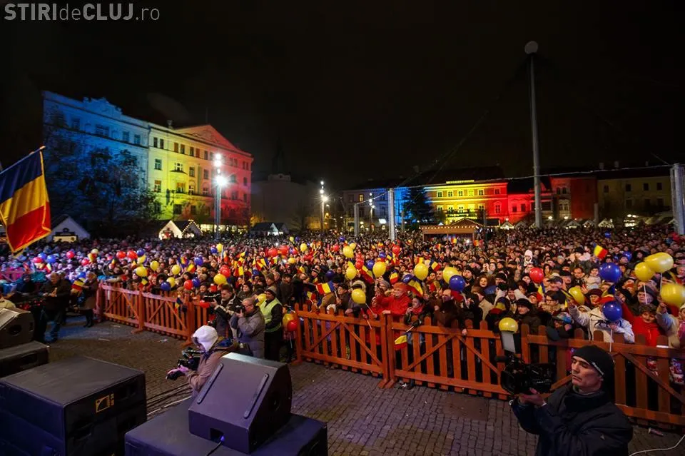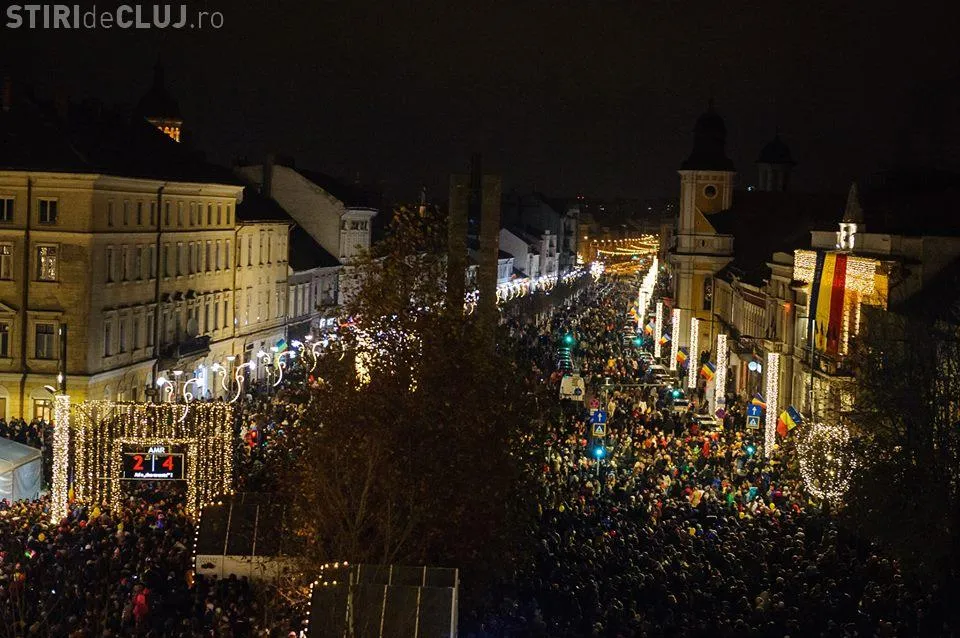Peste 50.000 de clujeni au ieșit în Piața Unirii și Piața Avram Iancu în seara zilei de 1 Decembrie, pentru a vedea artificiile, concertele și a participa la Târgul de Crăciun.