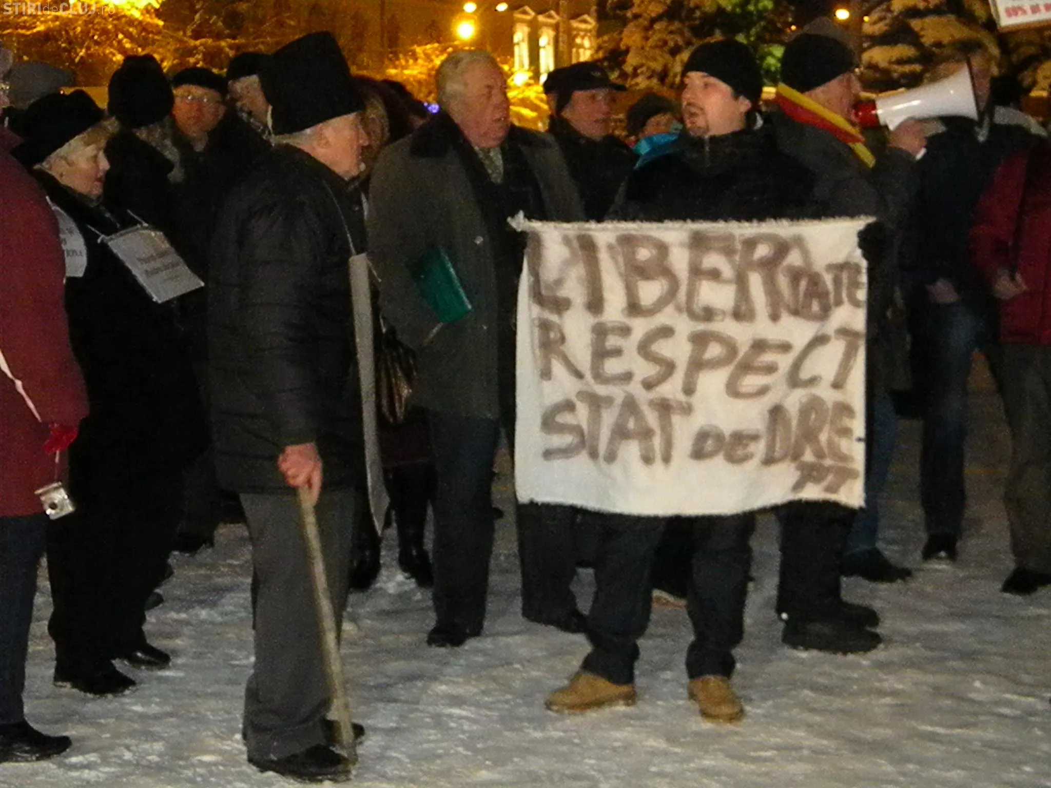 50 de oameni in Piata Unirii, la protest! Majoritatea sunt pensionari VIDEO si FOTO