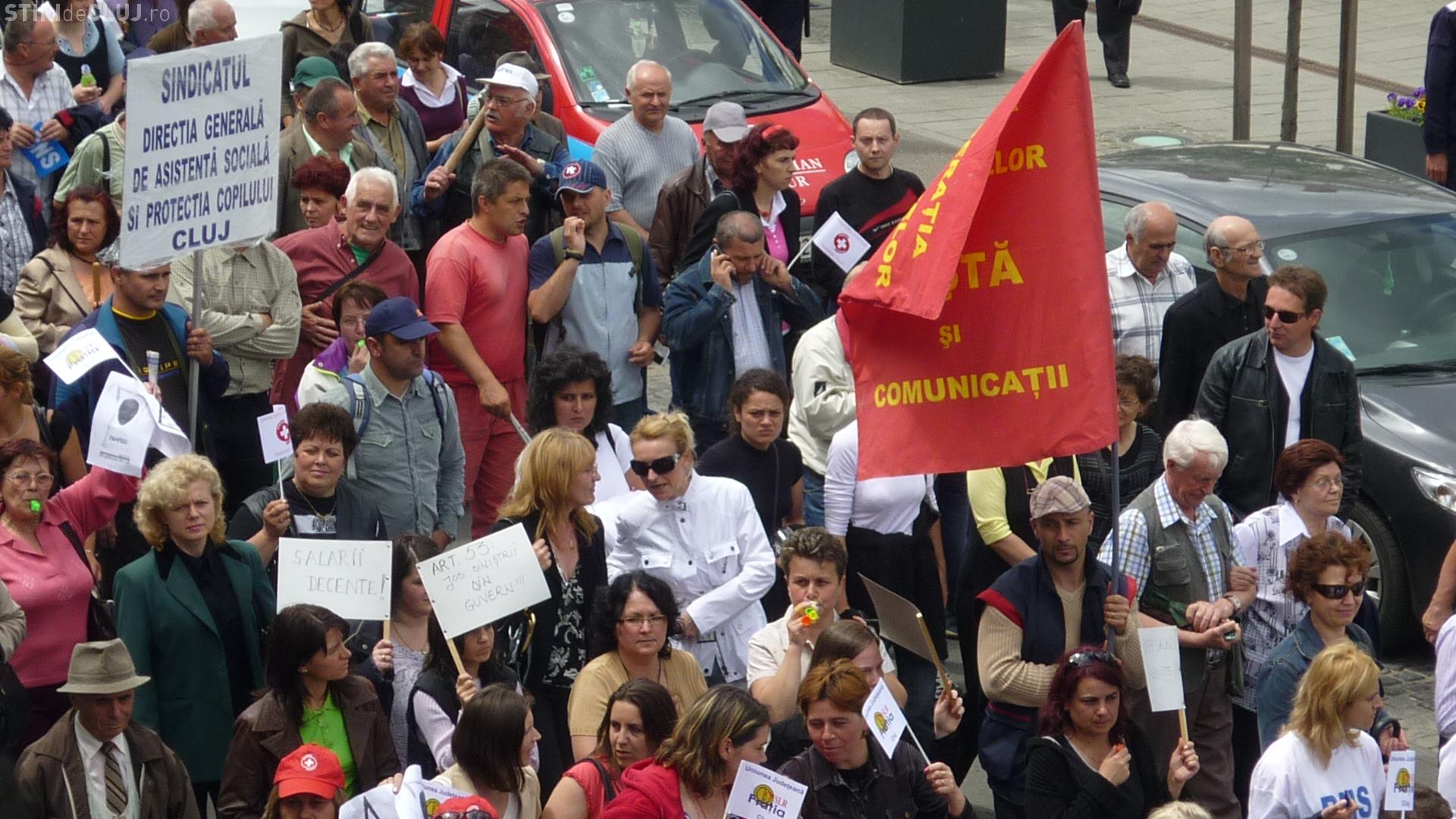 500 de sindicalisti picheteaza Prefectura Cluj de la ora 13.00, iar maine se vor opri si la sediile PDL si UDMR pentru a-si striga nemultumirile. Protestatarii sunt revoltati de reducerea salariilor cu 25 % si a pensiilor cu 15 %.