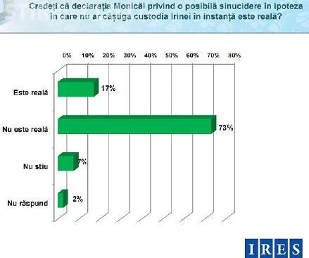73% dintre romani nu cred ca Monica Columbeanu se va sinucide daca va pierde custodia fiicei sale! VEZI tot sondajul IRES