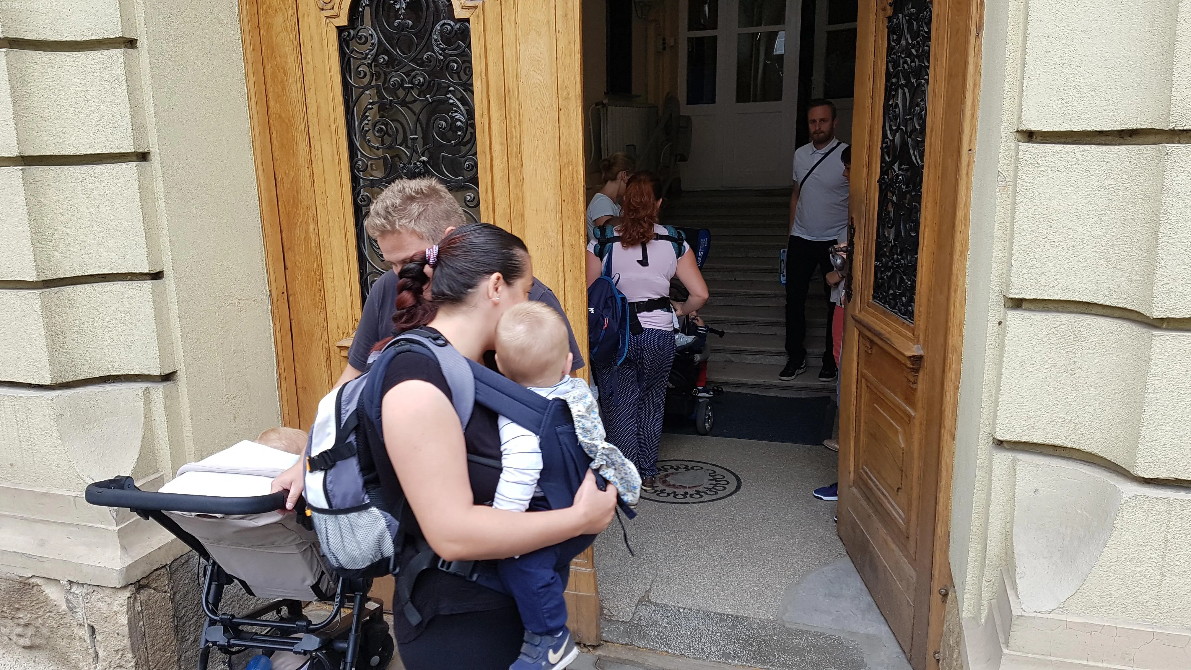Grupul de părinți nemulțumiți s-a deplasat la Primăria Cluj-Napoca pentru o audiență, dar nu au putut trece de portar. ”Puteți să mergeți la registratură să vă înscrieți în audiență la domnul primar Emil Boc”, le-a spus portarul, iar oamenii au fost nevoiți să plece, așteptând o audiență pentru o problemă care se știe de ani de zile și nu a fost rezolvată.