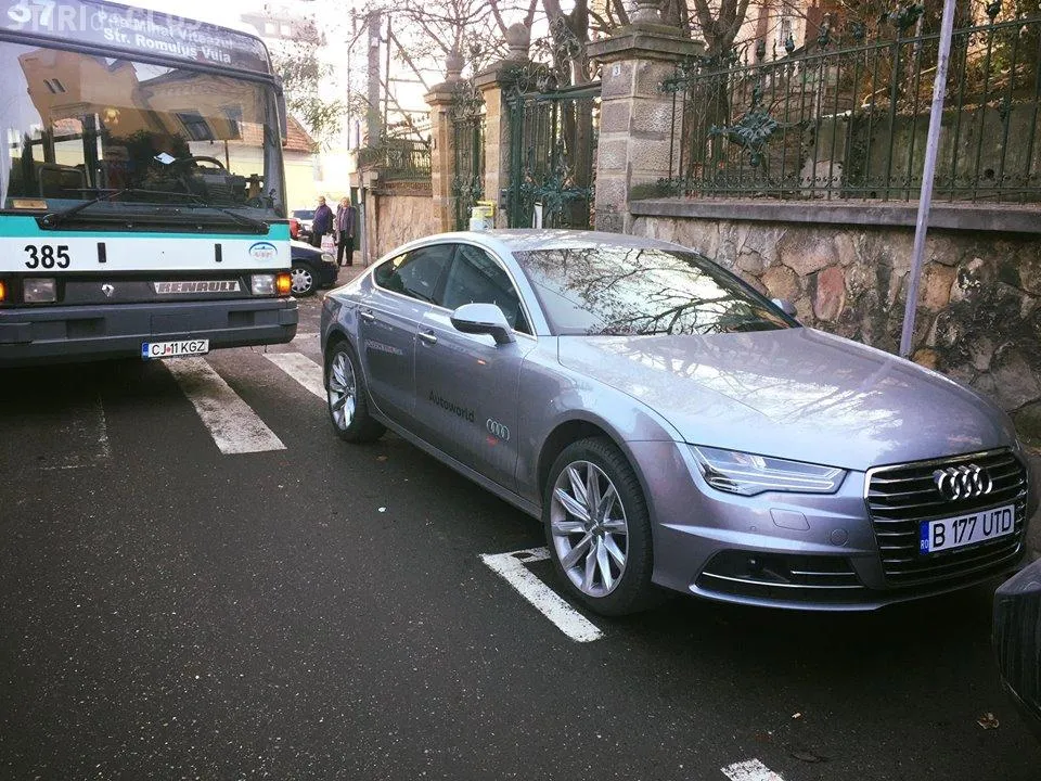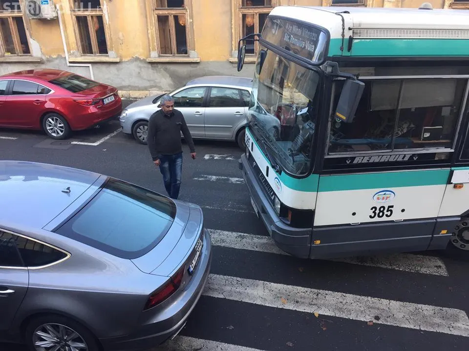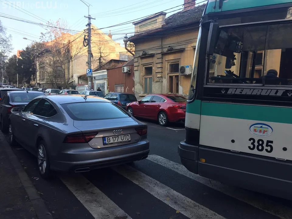 Șoferul unui Audi a reușit să blocheze deplasarea autobuzelor pe o stradă din Cluj-Napoca.