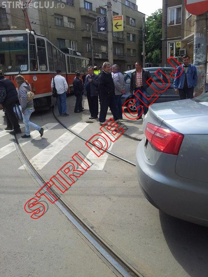 A blocat CINCI tramvaie pe Horea, după ce a parcat pe linia de tramvai - FOTO