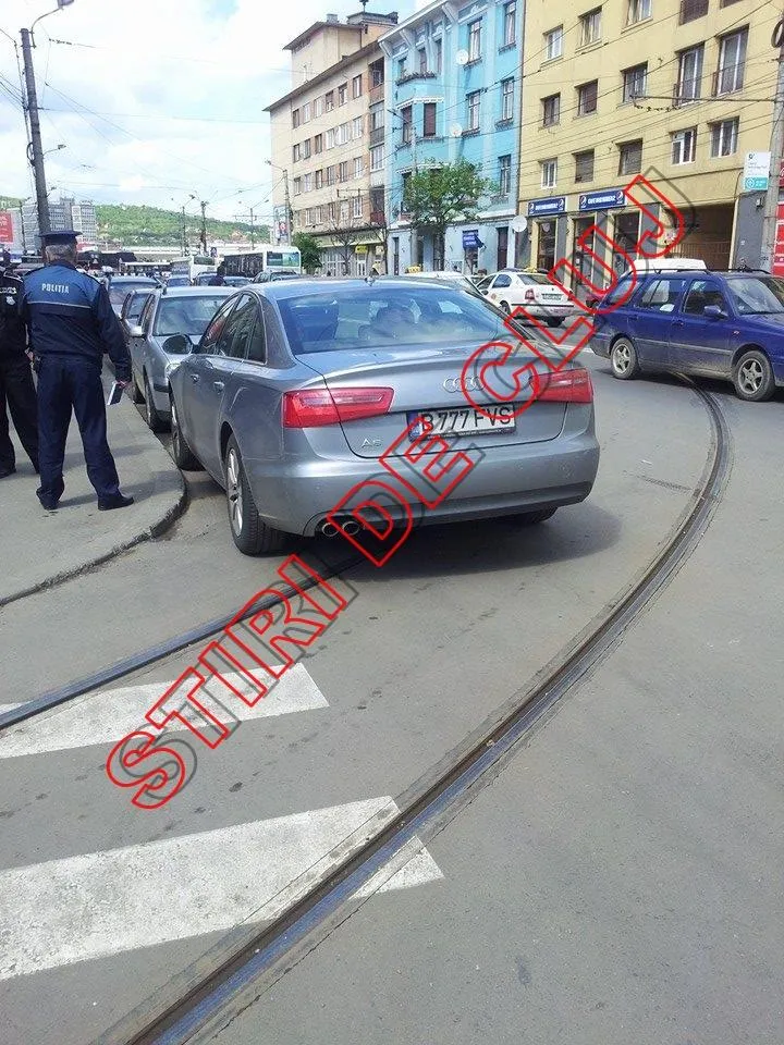 Șoferul unui Audi, cu numere de București, a reușit să blocheze cinci tramvai pe strada Horea, după ce a parcat chiar pe linia tramvaiului.