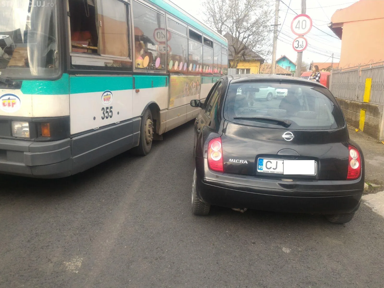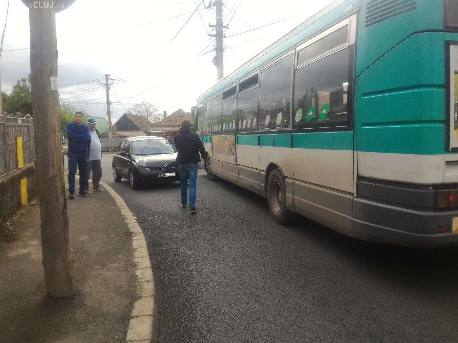A blocat traficul pe o stradă din Cluj și a fost lovită de autobuz. Poliția a venit urgent - FOTO