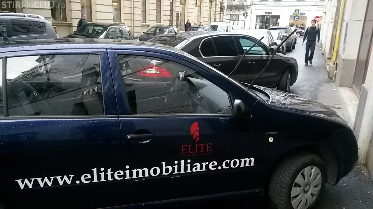 Un șofer și-a parcat autoturismul de serviciu câteva ore pe o stradă din centrului Clujului, blocând traficul pietonal.