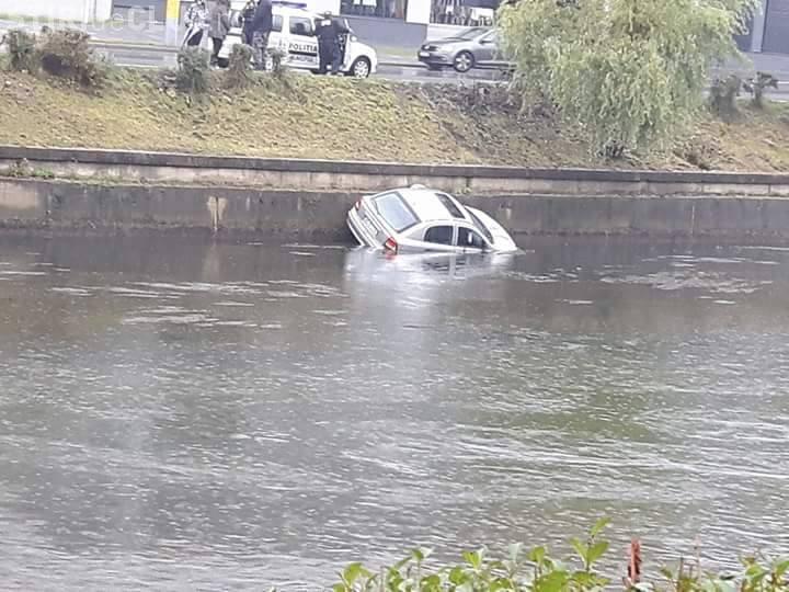 Accidentul de duminică, 16 octombrie, nu s-a soldat cu răniți, șoferița care a căzut în Someș fiind ajutată de un echipaj de la Poliția Locală.