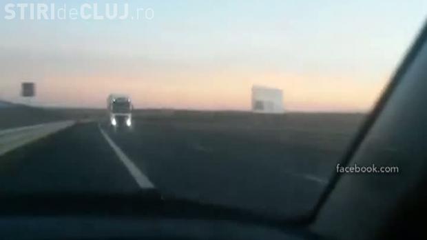 Un şofer inconştient s-a filmat în timp ce conducea pe contrasens, pe Autostrada Transilvania, cu viteză mare.