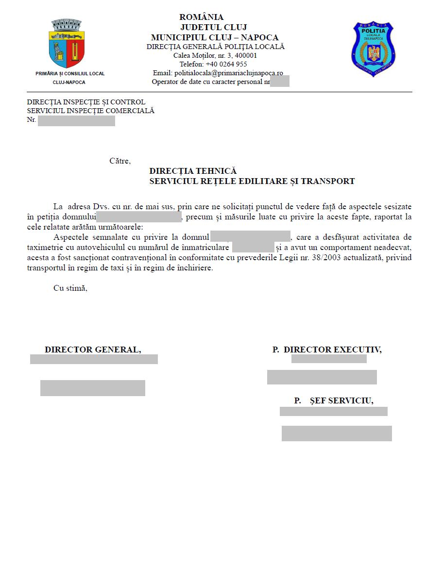 Știri de Cluj a prezentat atunci în exclusivitate cazul. Tot scandalul are la bază accesul taximetriștilor pe benzile dedicate pentru mijloacele de transport în comun. Legea spune că au acest drept, pentru că fac transport public, dar regulamentul local adoptat de Primăria Cluj-Napoca precizează că au dreptul să circule numai pe strada Regele Ferdinand și Bulevardul Nicolae Titulescu.