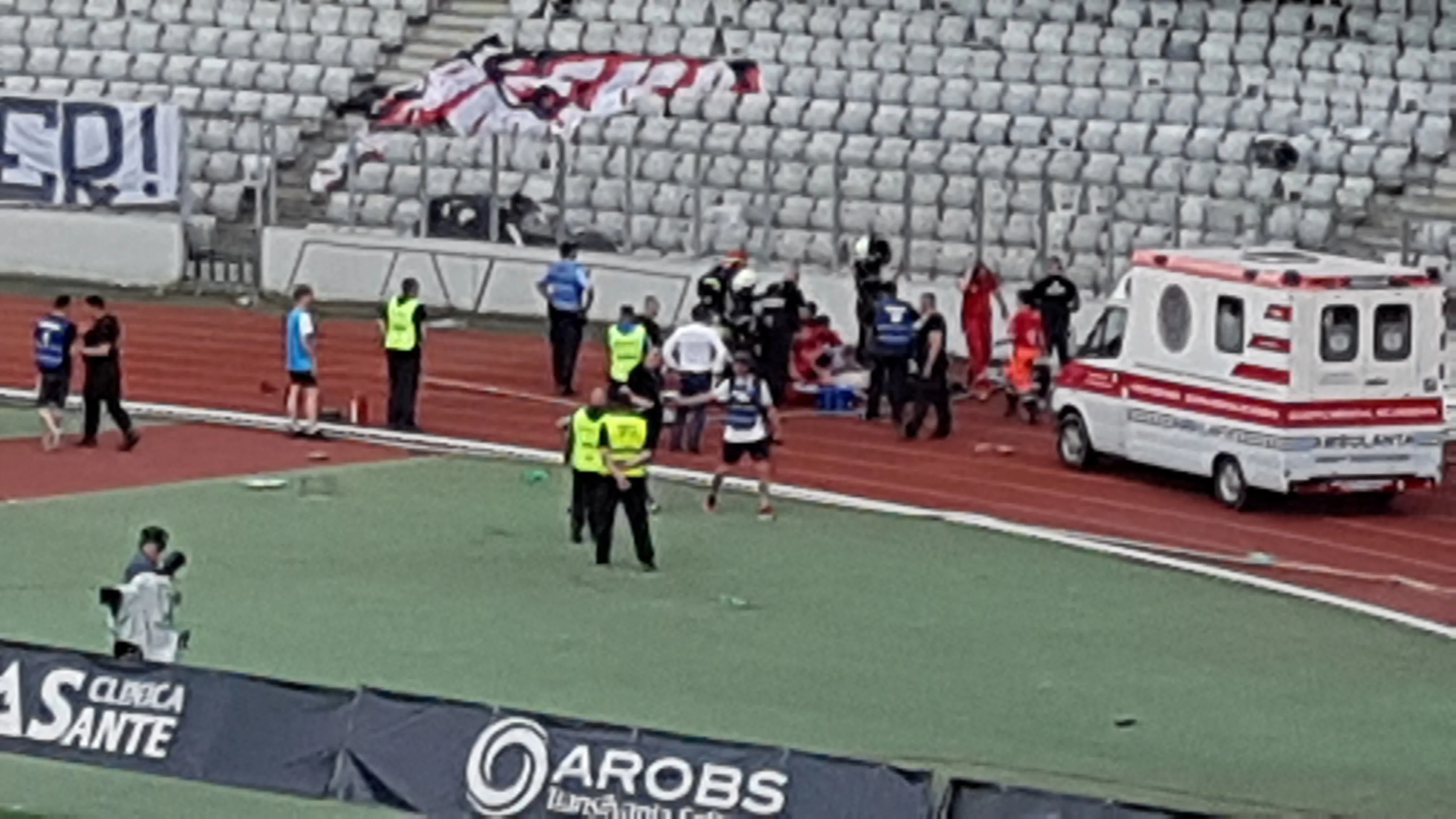 Polițiștii clujeni au depistat tânărul care ar fi lovit un jandarm cu scaunul în cap la meciul de fotbal dintre ”U” Cluj și Hermannstadt, de duminică.