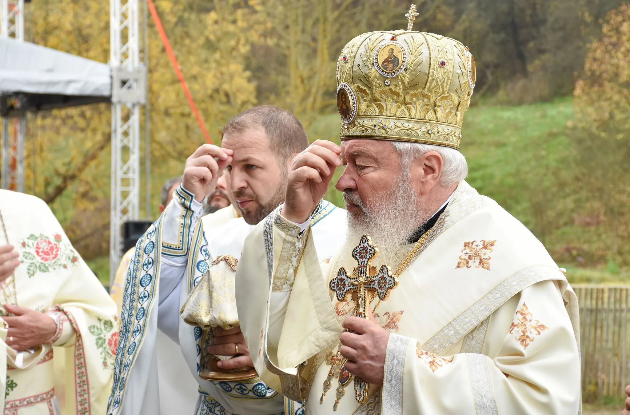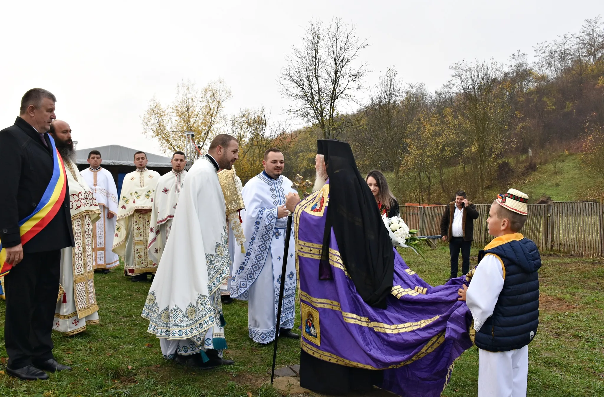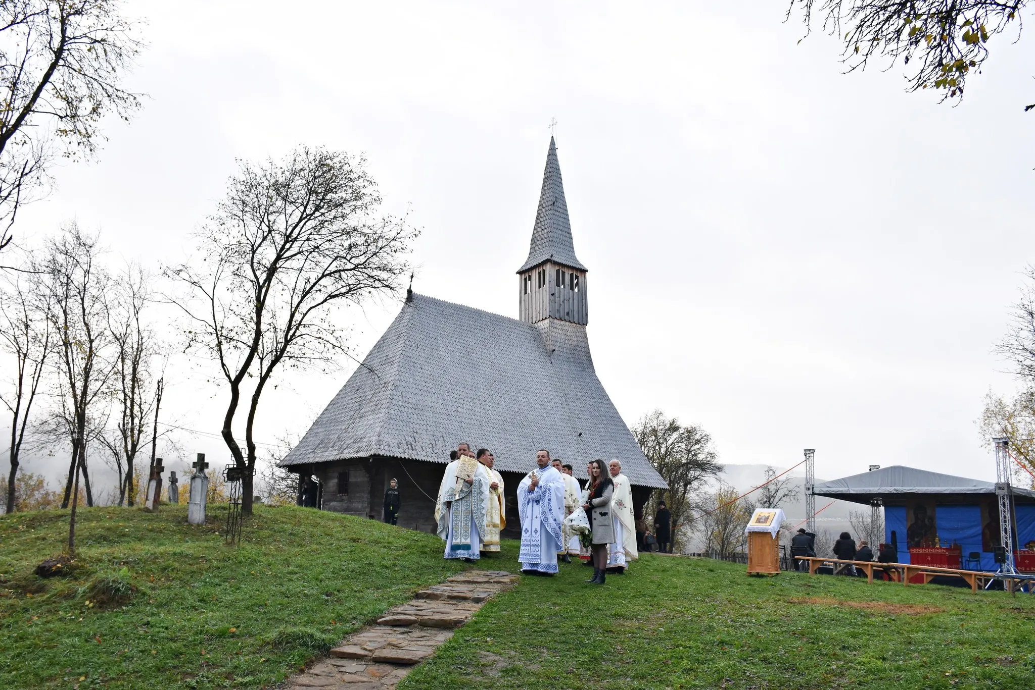 În continuare, pe un podium special amenajat în proximitatea bisericii monument istoric, Părintele Mitropolit Andrei a oficiat Sfânta Liturghie, înconjurat de un sobor de clerici, în prezența oficialităților locale și județene, precum și a numeroși credincioși, mulți îmbrăcați în straie populare specifice zonei.
