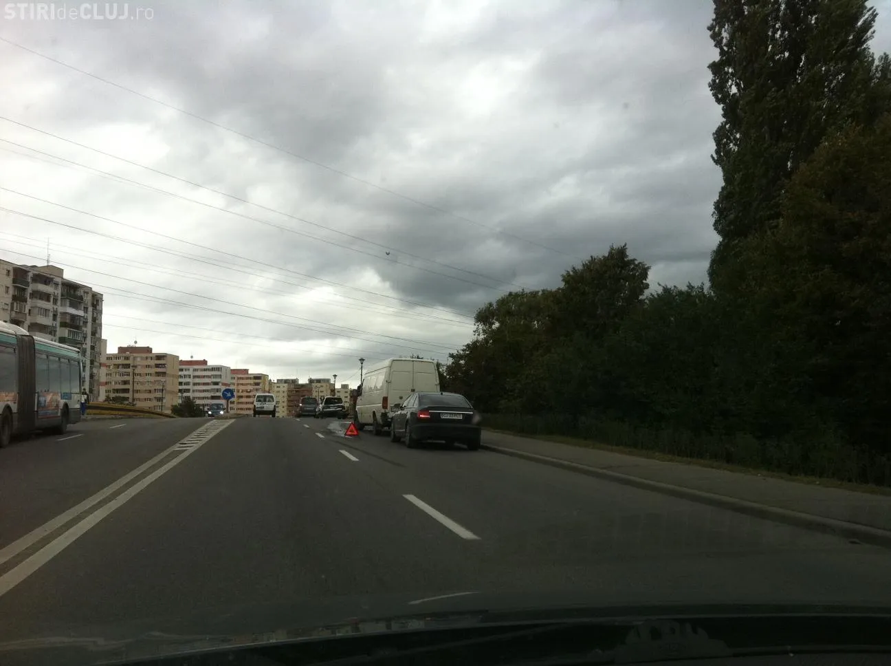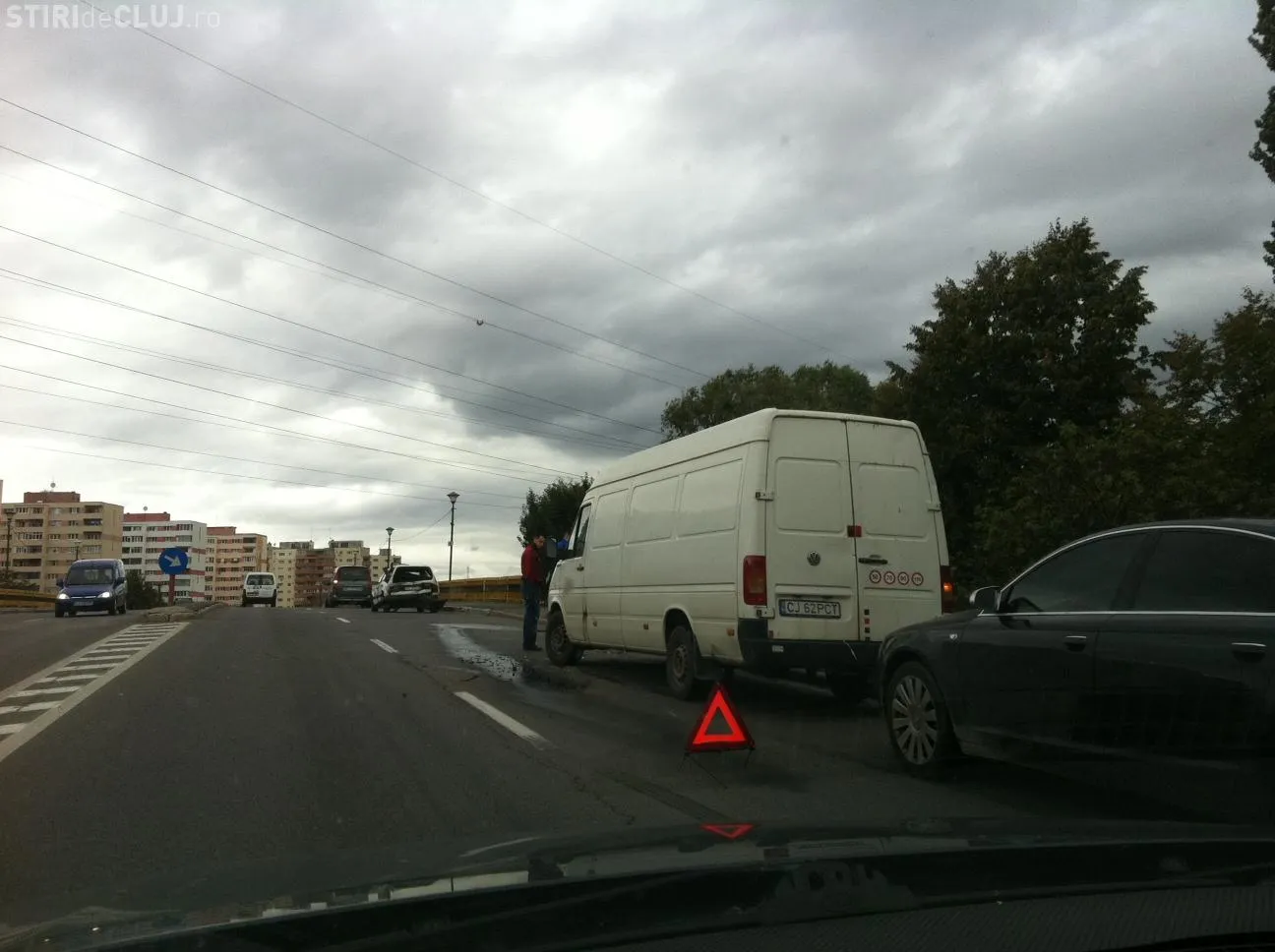 Accidentul s-a produs pe Bulevardul 1 Decembrie 1918, la intrare pe podul de peste Someș. Șoferul unui autoturism a frânat brusc și a fost lovit din spate de o dubă, care nu a păstrat distanța regulamentară.