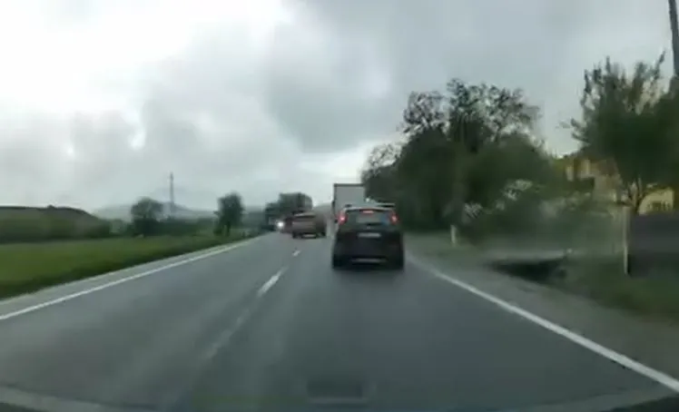Un incident extrem de periculos a avut loc pe un drum din Cluj-Napoca, unde un șofer de autoturism a efectuat o depășire riscantă, punându-și viața sa și pe cea a celorlalți participanți la trafic în pericol. Conform imaginilor, șoferul a încercat să depășească un TIR, chiar când din contrasens venea un alt TIR. Deși era evident că camionul se apropia rapid, șoferul autoturismului nu a revenit imediat pe banda sa de circulație, alegând să rămână față în față cu TIR-ul care venea din sens opus, într-o manevră extrem de periculoasă.
