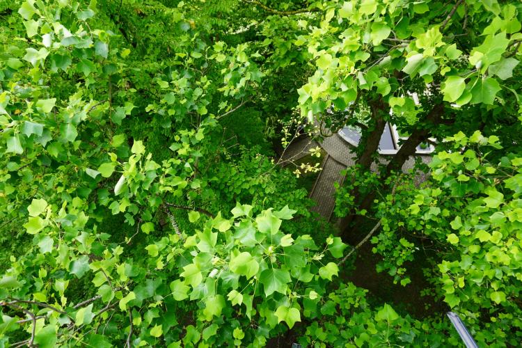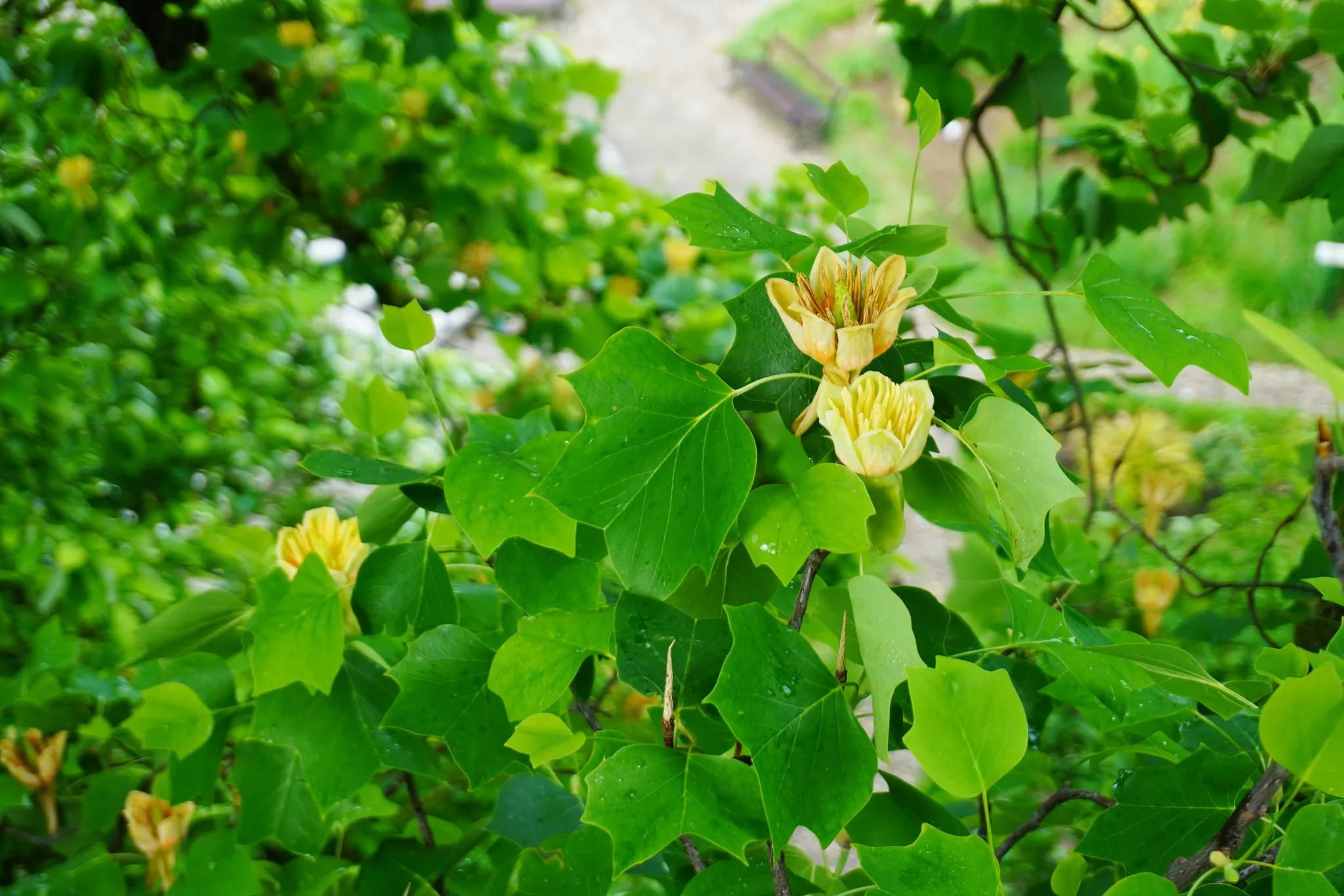 Copacul cu lalele (Liriodendron tulipifera) este la apogeul înflorii.