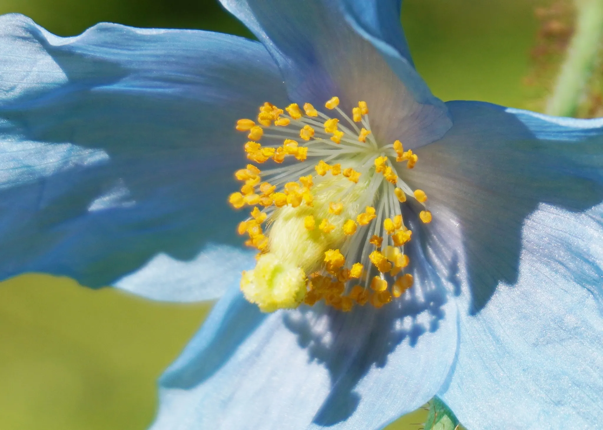 „Macul albastru himalayan (Meconopsis betonicifolia), originar din Yunnan, China, își dezvăluie frumusețea acum în sectorul nostru ornamental. Această plantă, dificil de cultivat, prosperă în grădina noastră pentru al patrulea an consecutiv!