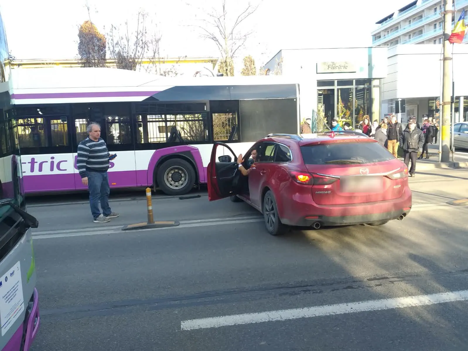 A intrat într-un autobuz electric lângă Iulius Mall Cluj - FOTO