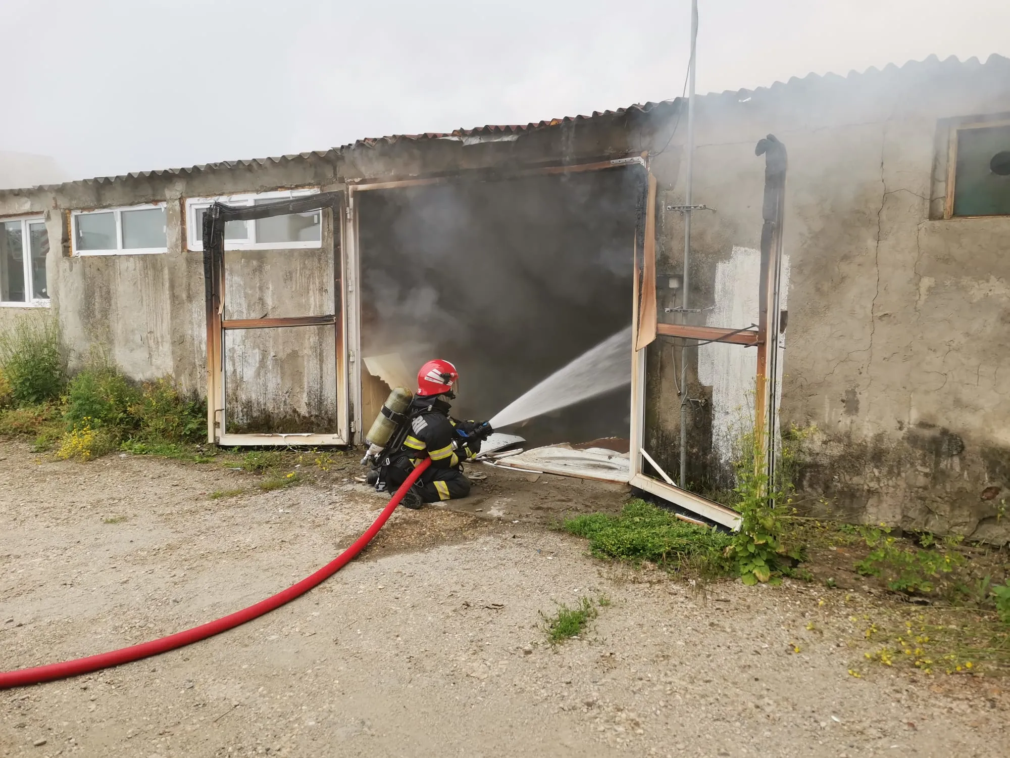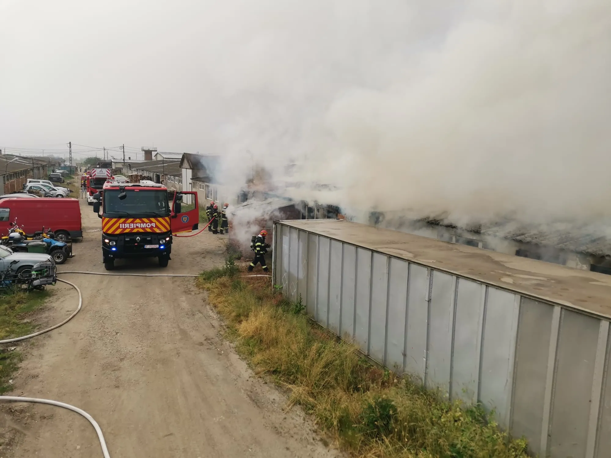 A luat foc acoperișul unei hale din Jucu. Incendiul este generalizat - VIDEO