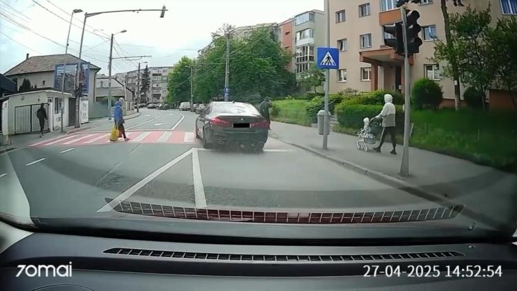 A oprit pentru unul, dar l-a ignorat pe celălalt! Incident revoltător în Cluj: Un șofer gonește pe trecerea de pietoni, deși era deja ocupată VIDEO