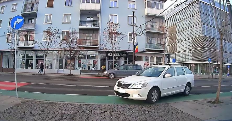 Acesta a trecut cu nepăsare linia continuă, a traversat ilegal chiar prin fața unui troleibuz și peste o pistă de biciclete doar ca să intre într-o zonă unde nu avea voie.