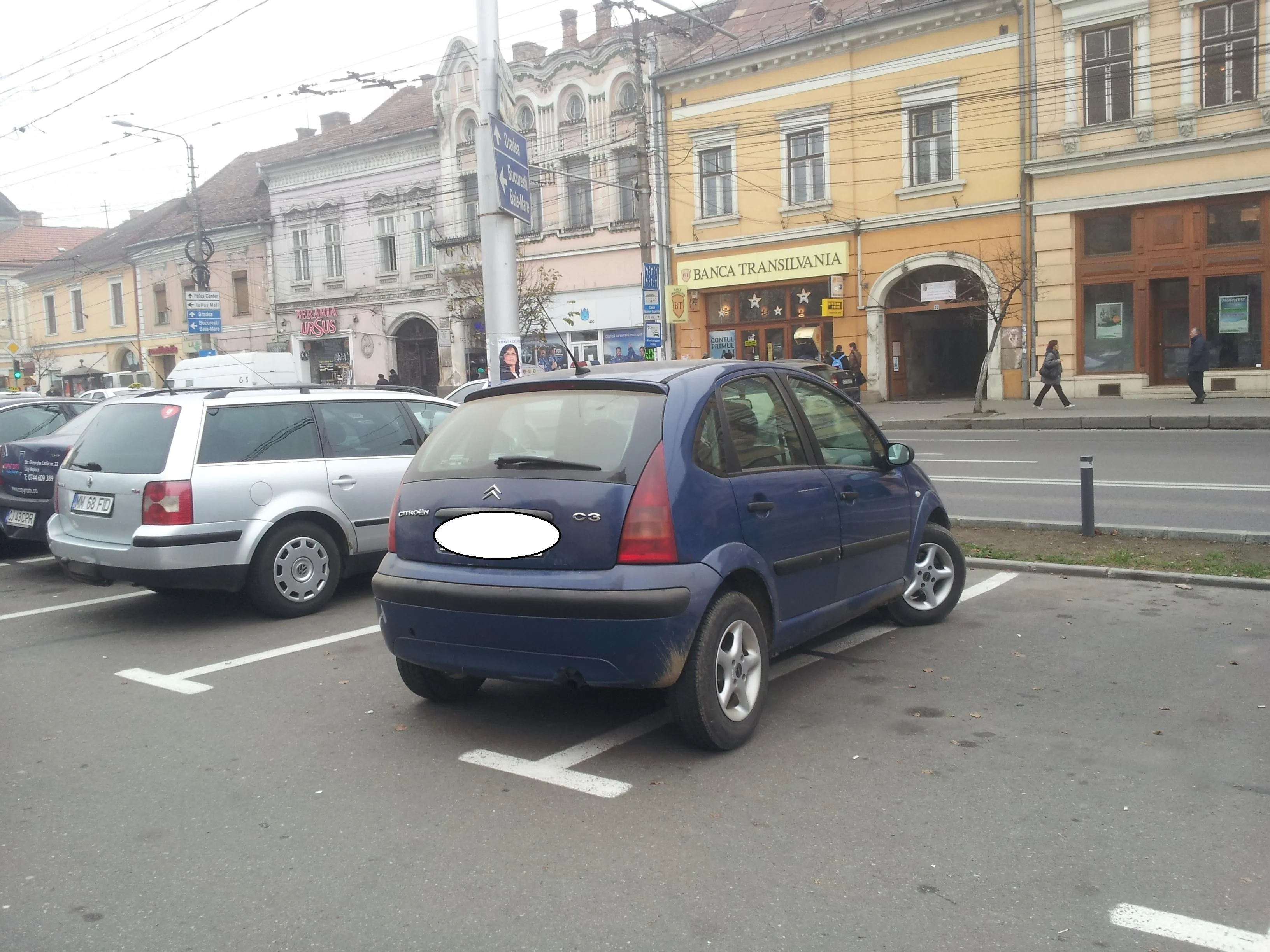 A plătit un loc de parcare în Piața Unirii și a ocupat două - FOTO