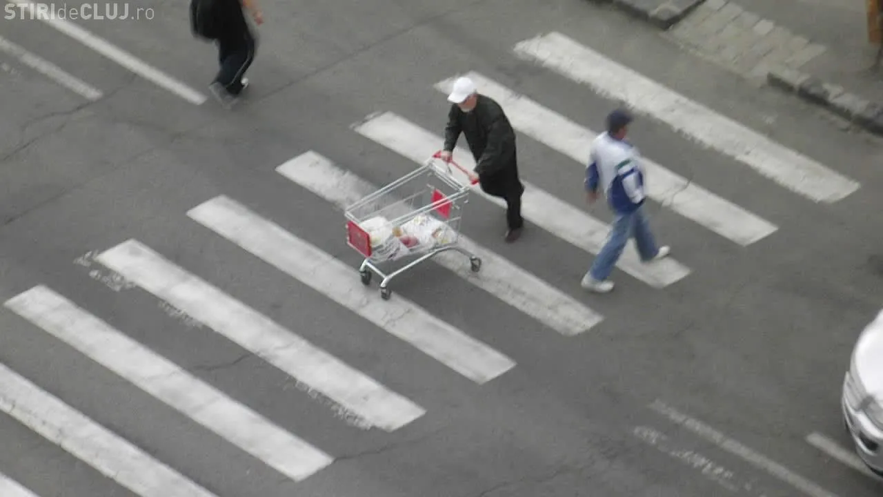 Darius, un cititor Știri de Cluj, l-a filmat din balcon și a surprins atât cum trecătorii rădeau de el, dar și cât de greu i-a fost bărbatului să împingă căruciorul, care era greu de controlat.