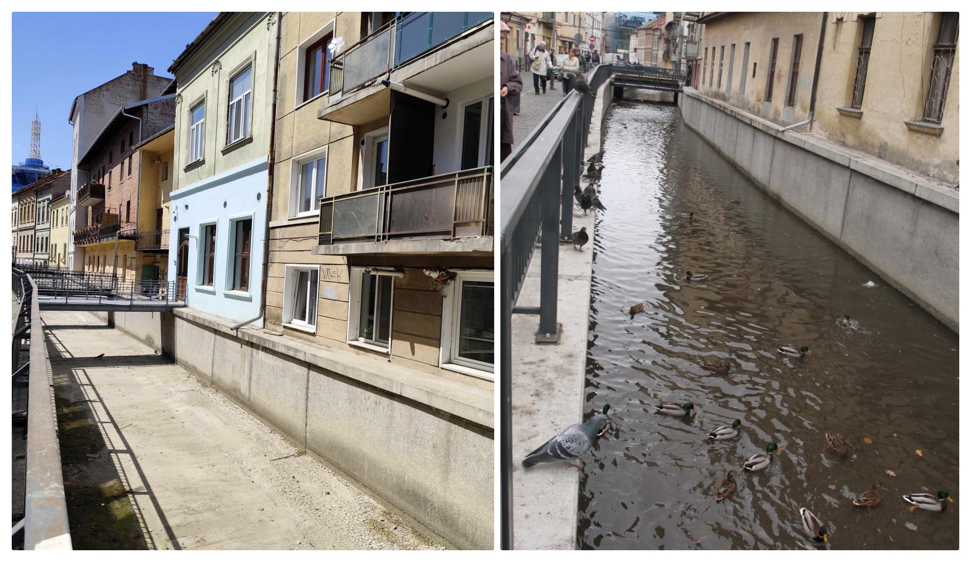 Canalul Morii nu mai are apă, cel puțin pe porțiunea din centrul Clujului, de pe strada Andrei Șaguna.