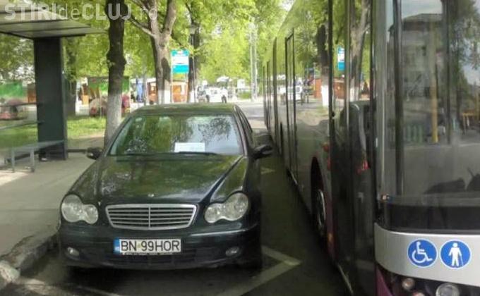 Un șofer și-a parcat Mercedesul în stația de autobuz de lângă Parcul Central, cu toate că la 200 de metri erau două parkinguri disponibile.
