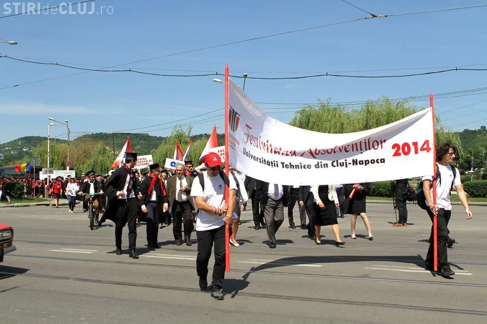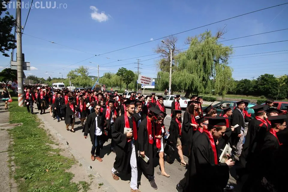 Ceremonia de absolvire a Universității Tehnice din Cluj-Napoca a avut loc vineri, 6 iunie, la Sala Sporturilor ”Horia Demian”. La final, tinerii au pornit în tradiționalul marș.