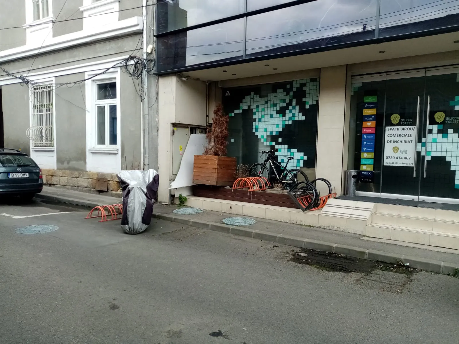 Unul dintre it -iștii care lucrează în clădire ne-a relatat că un polițist local, din cadrul Primăriei Cluj-Napoca, s-a prezentat la secretariat joi dimineața și a anunțat că ”până în 15 standurile pentru biciclete și trotinete, din fața clădirii trebuie să dispară”. Secretara a crezut că este vorba despre data de 15 mai, iar conducerea are timp să discute și cei de la Primărie, mai ales că toți angajații clădirii sunt plecați în vacanța de Paște.